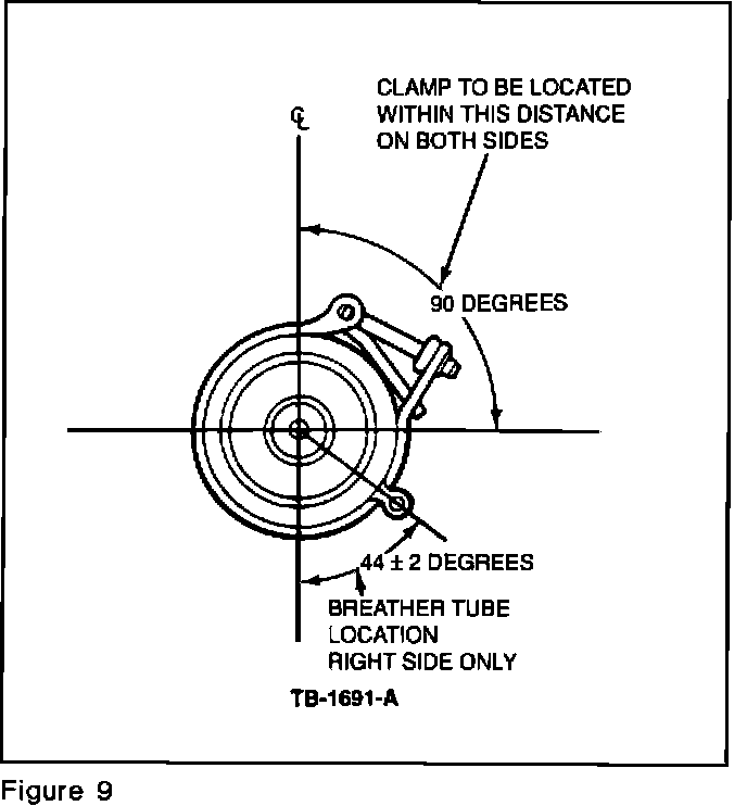 c. At the boot bellows/housing large ID, install screw type (hose) clamps and position screw axis as shown in Figure 9. Tighten screw to 1.7-2.5 lb.ft. (2.3-3.4 N-m).