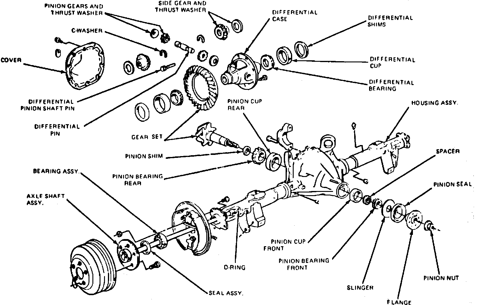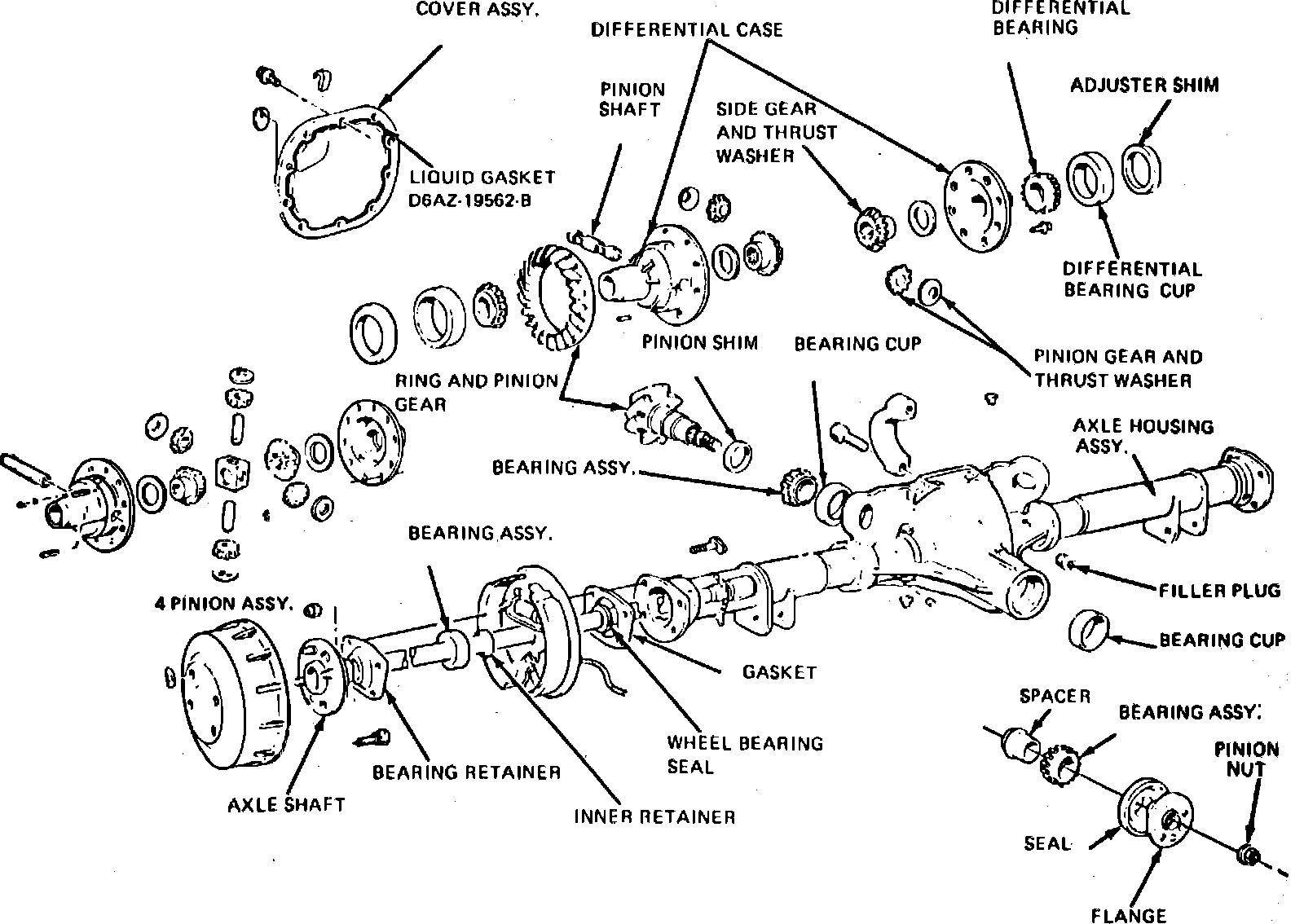 Fig. 1 Exploded view of 6-3/4inch ring gear rear axle: