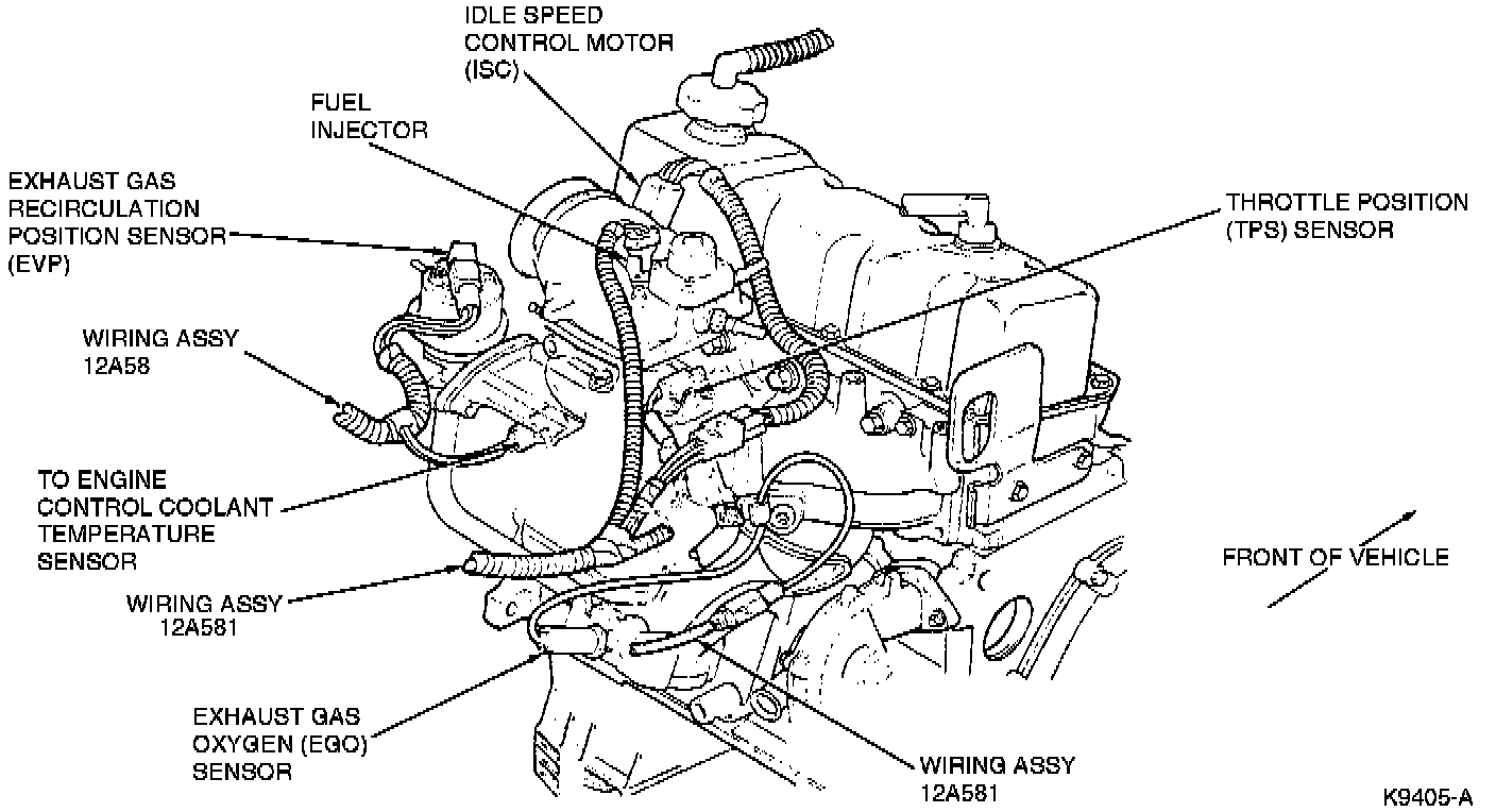 The engine coolant temperature sensor is located on the rear of the engine.