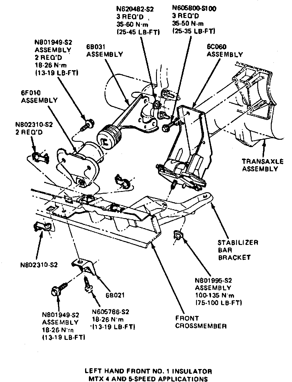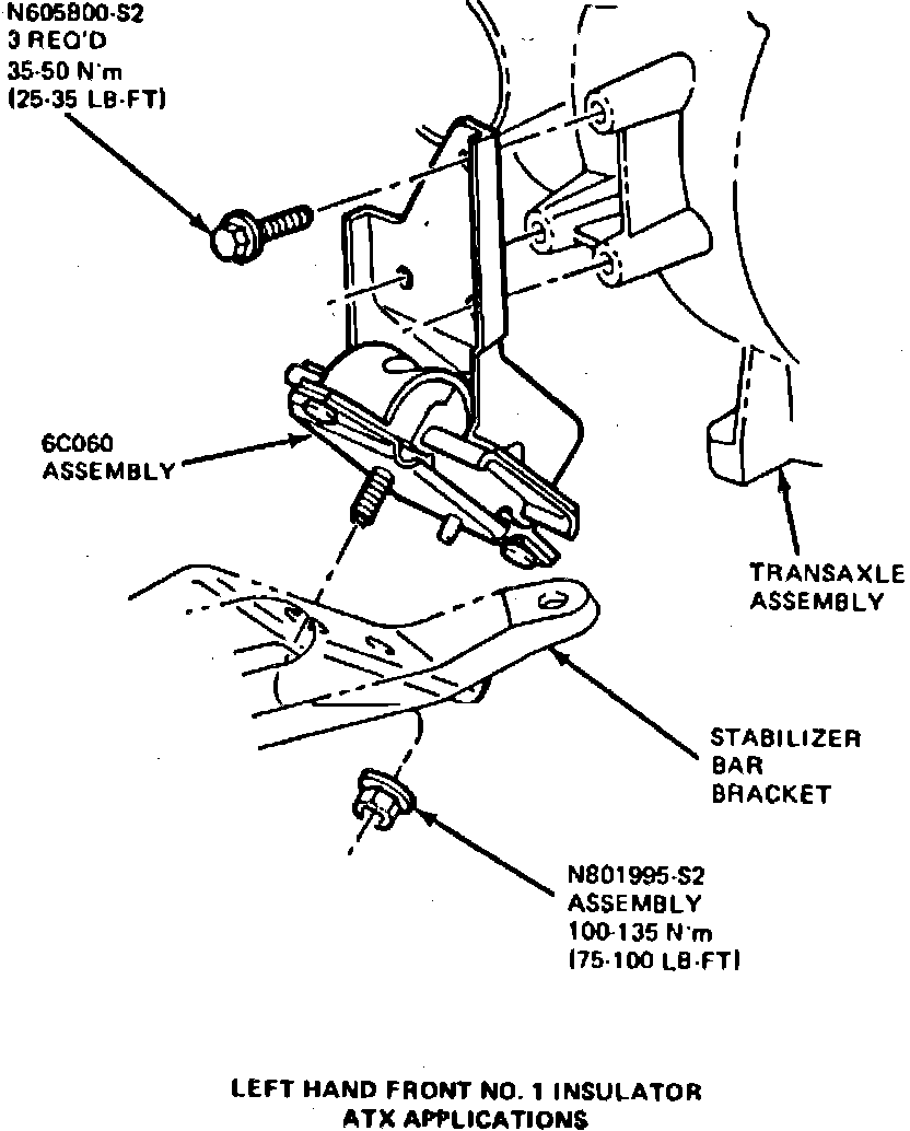 Fig. 1 Lefthand front No. 1 insulator. 4 & 5 speed manual transaxle: