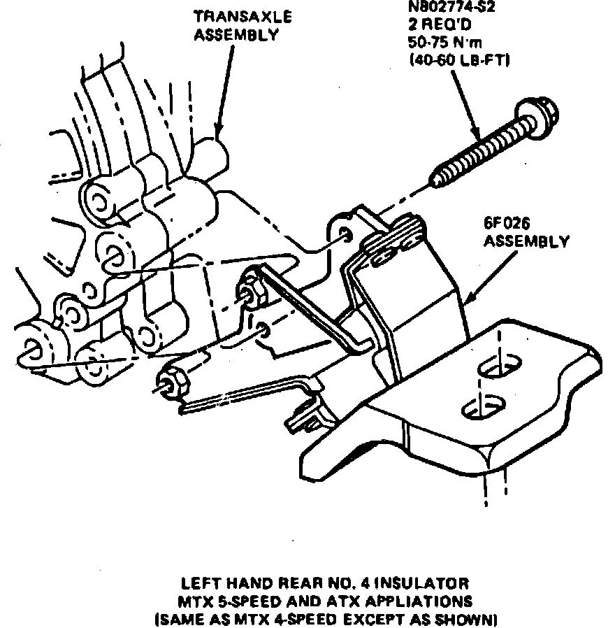 Fig. 4 Lefthand rear No. 4 insulator. 5 speed manual & automatic transaxle: