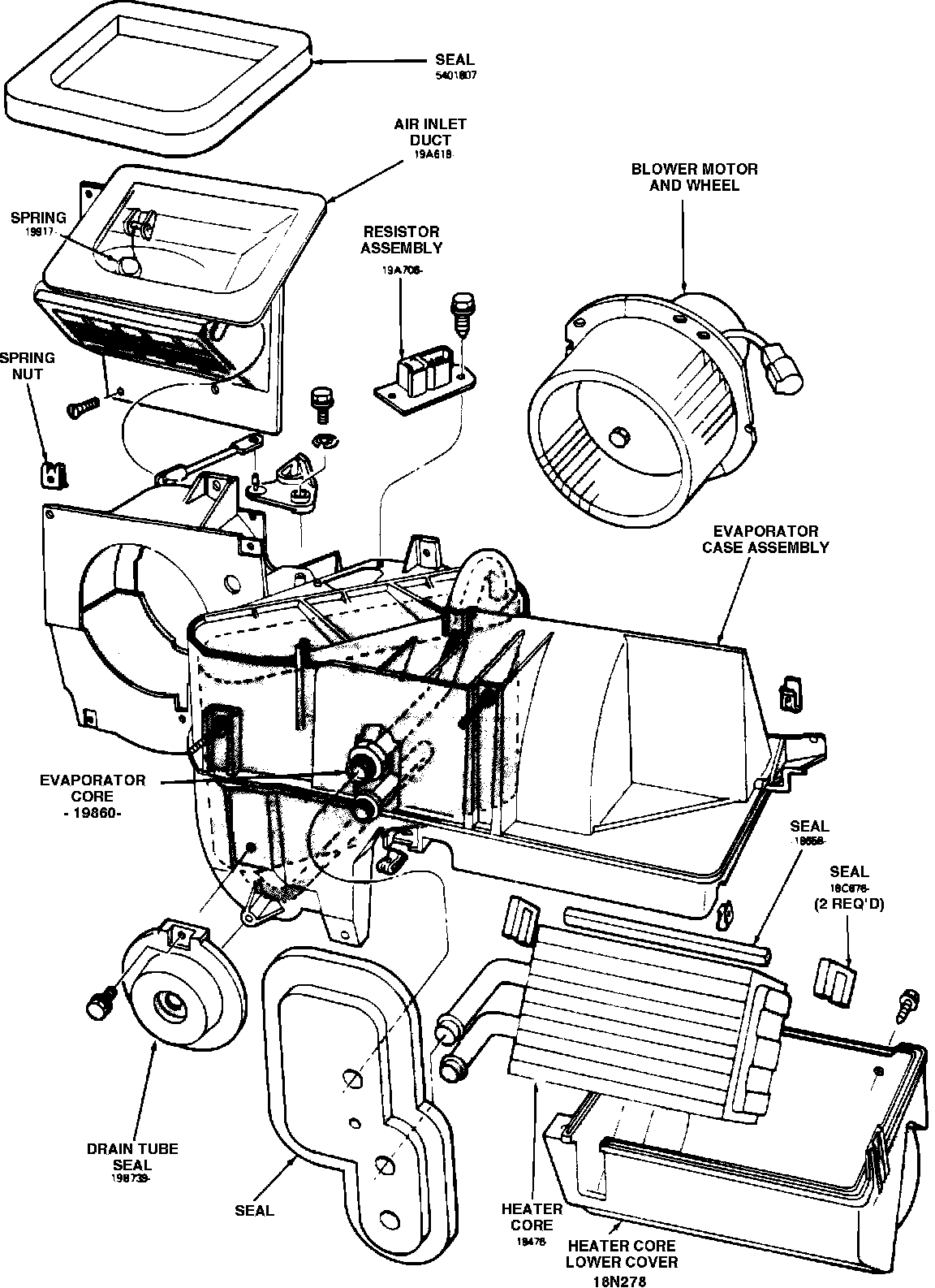 8. Remove the one screw attaching bottom of evaporator case to dash panel, Fig. 22.