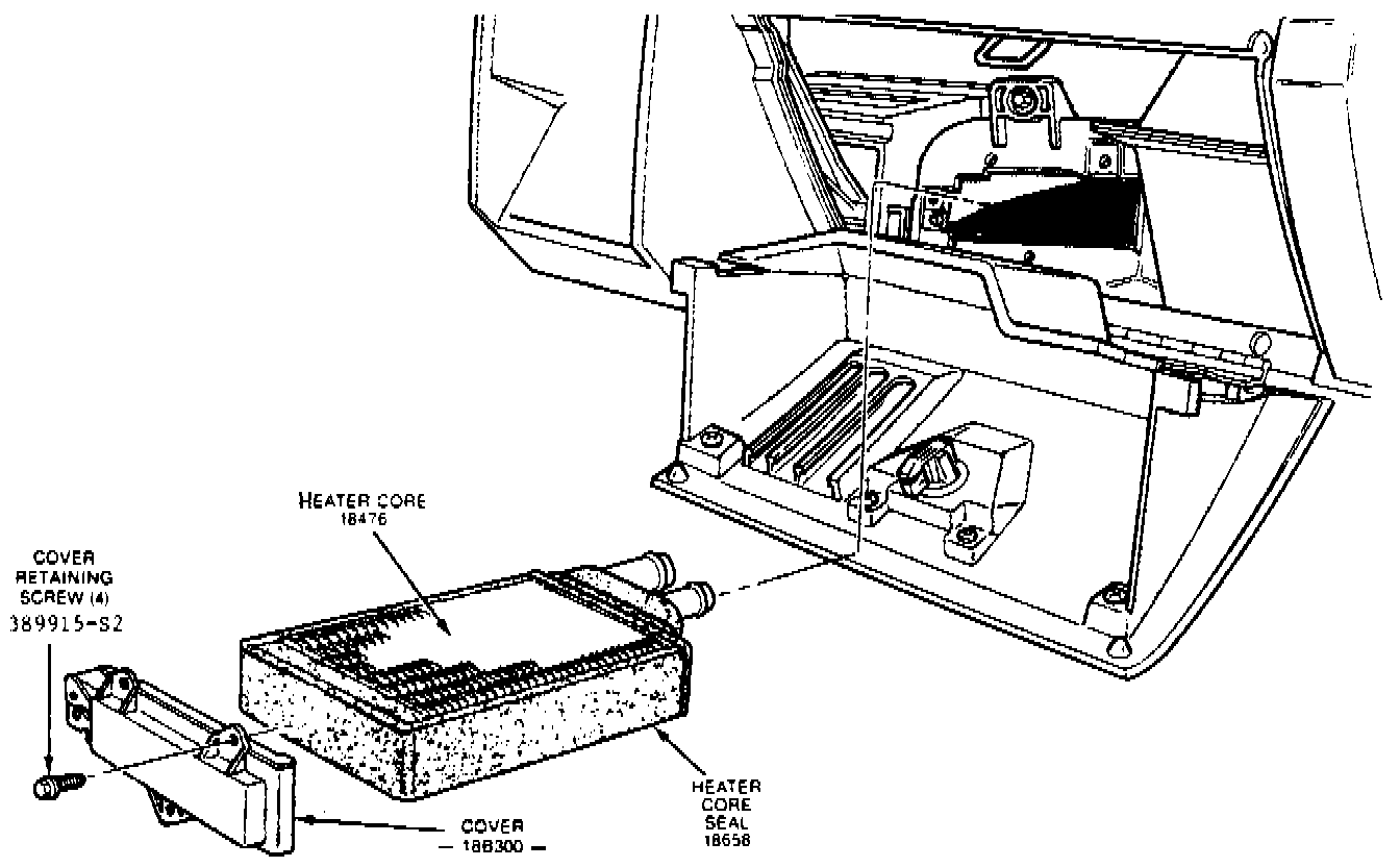 3. Position the heater core cover to the heater case assembly. Install the four attaching screws. Tighten the cover attaching screws securely.
