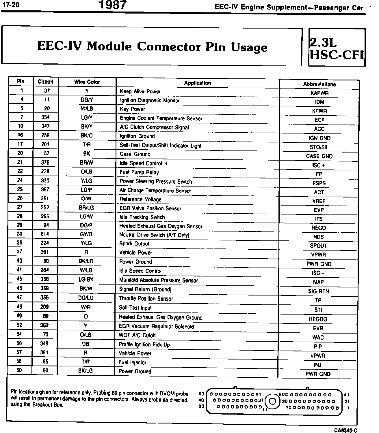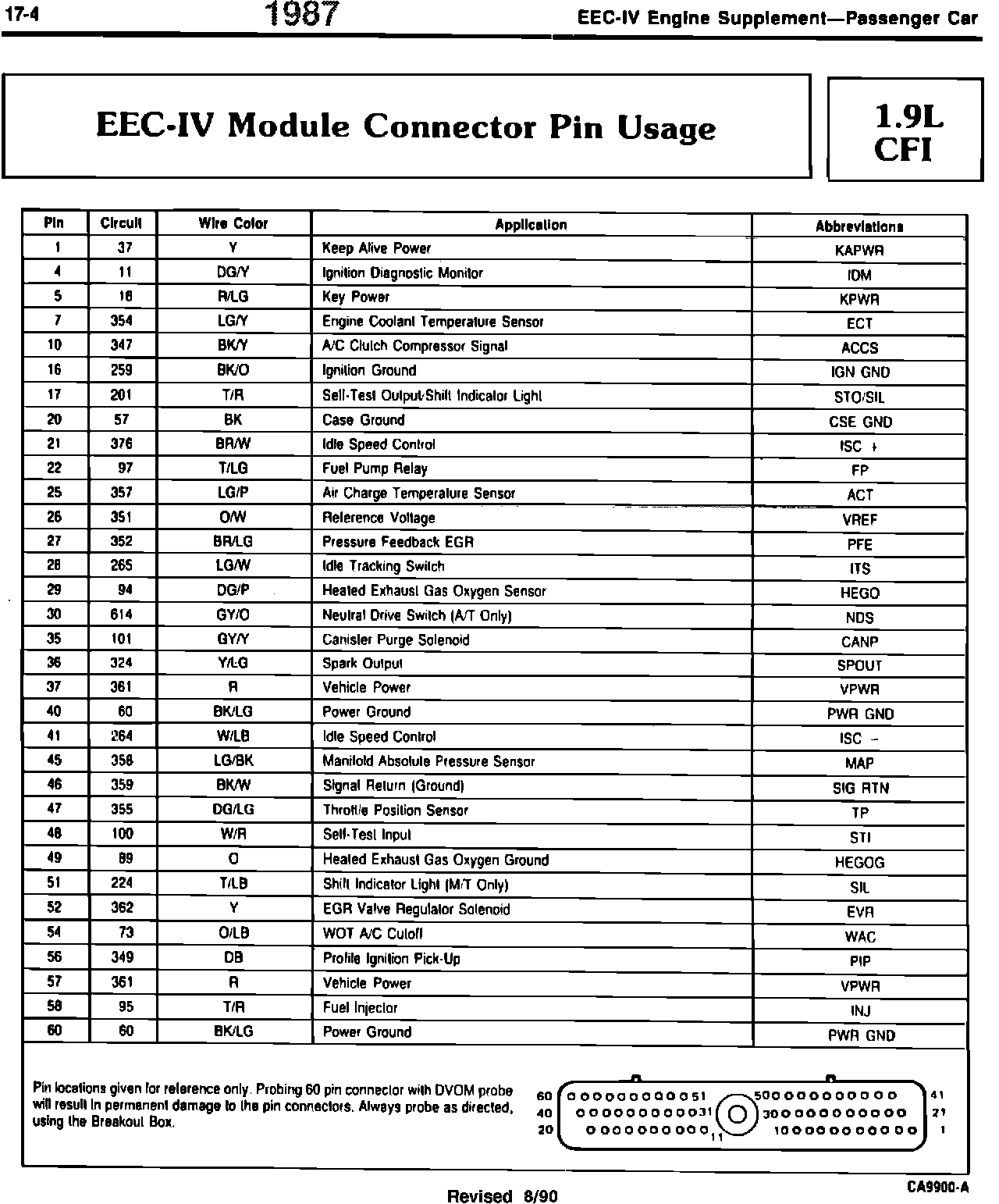 . EEC-IV Module Connector Pin Usage 1.9L CFI