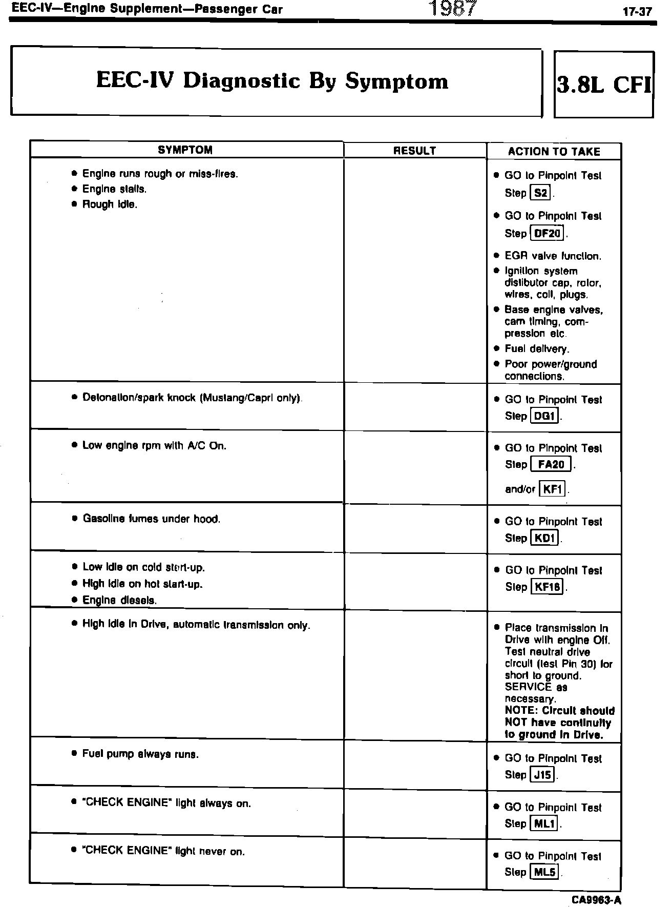 EEC-IV Diagnostic By Symptom 3.8L CFI