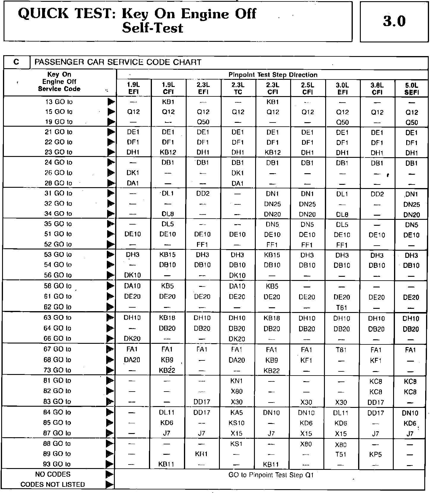 3.0C - Passenger Car Service Code Chart (KOEO)