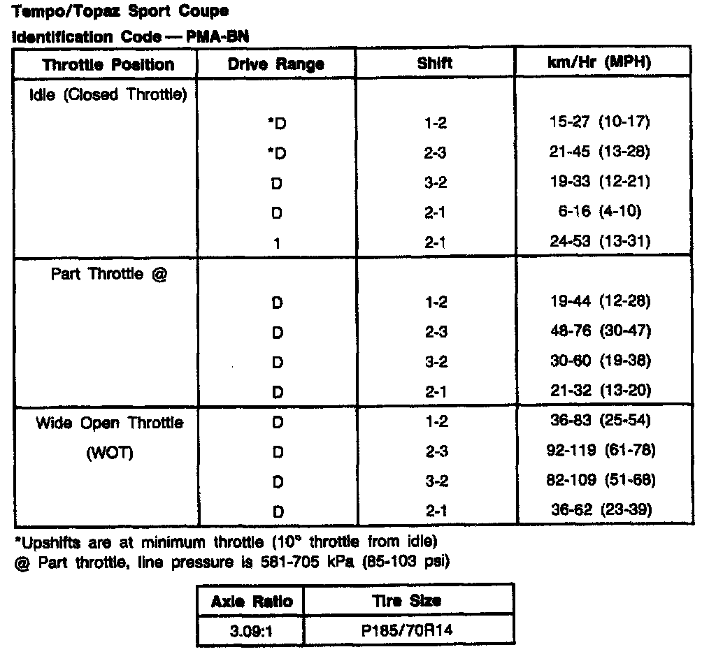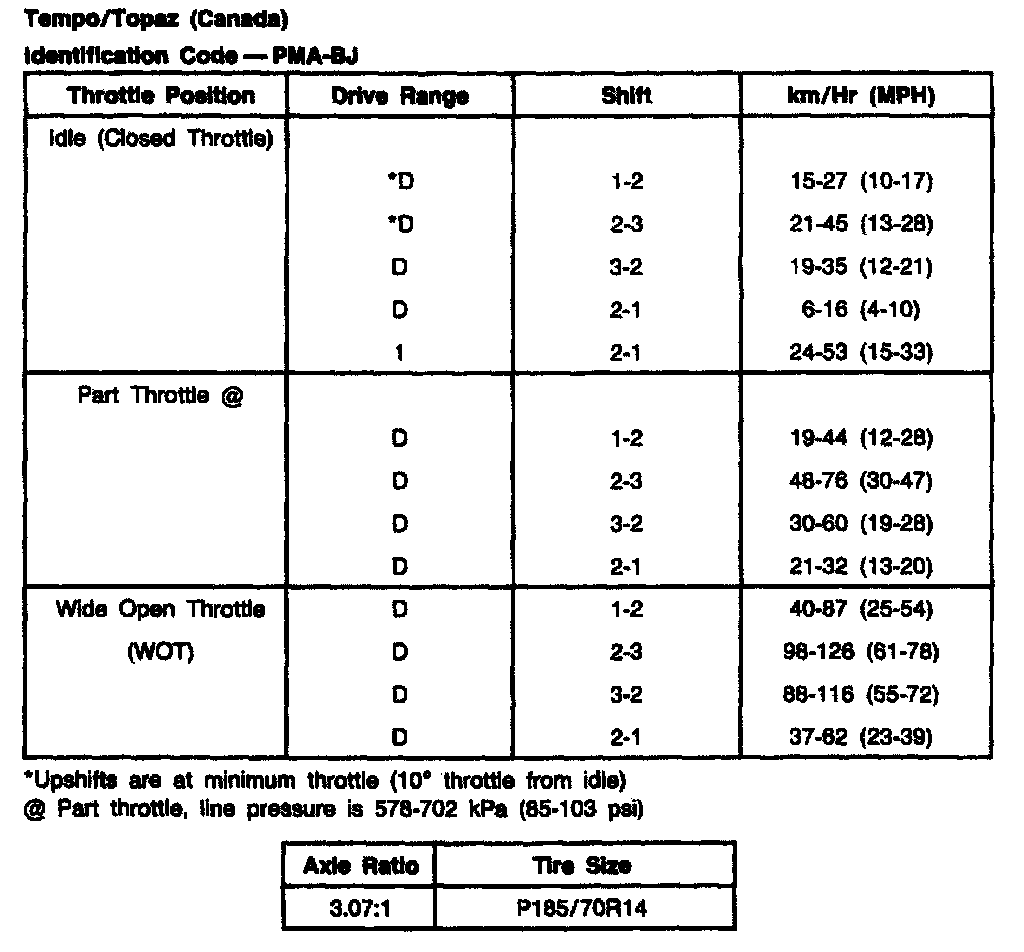 ATX 3-spd A/T, Shift Speeds (Tempo/Topaz):