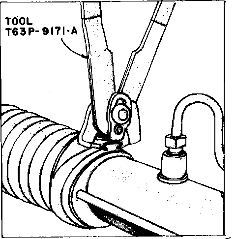 5. Install bellows, breather tube and clamps. Using tool No. T63P-9171-A or equivalent, secure clamps properly, Fig. 30.