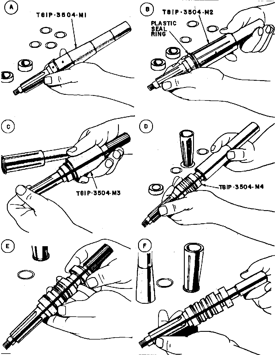 3. Install four valve sleeve rings, refer to Fig. 37 A---F and the following steps: