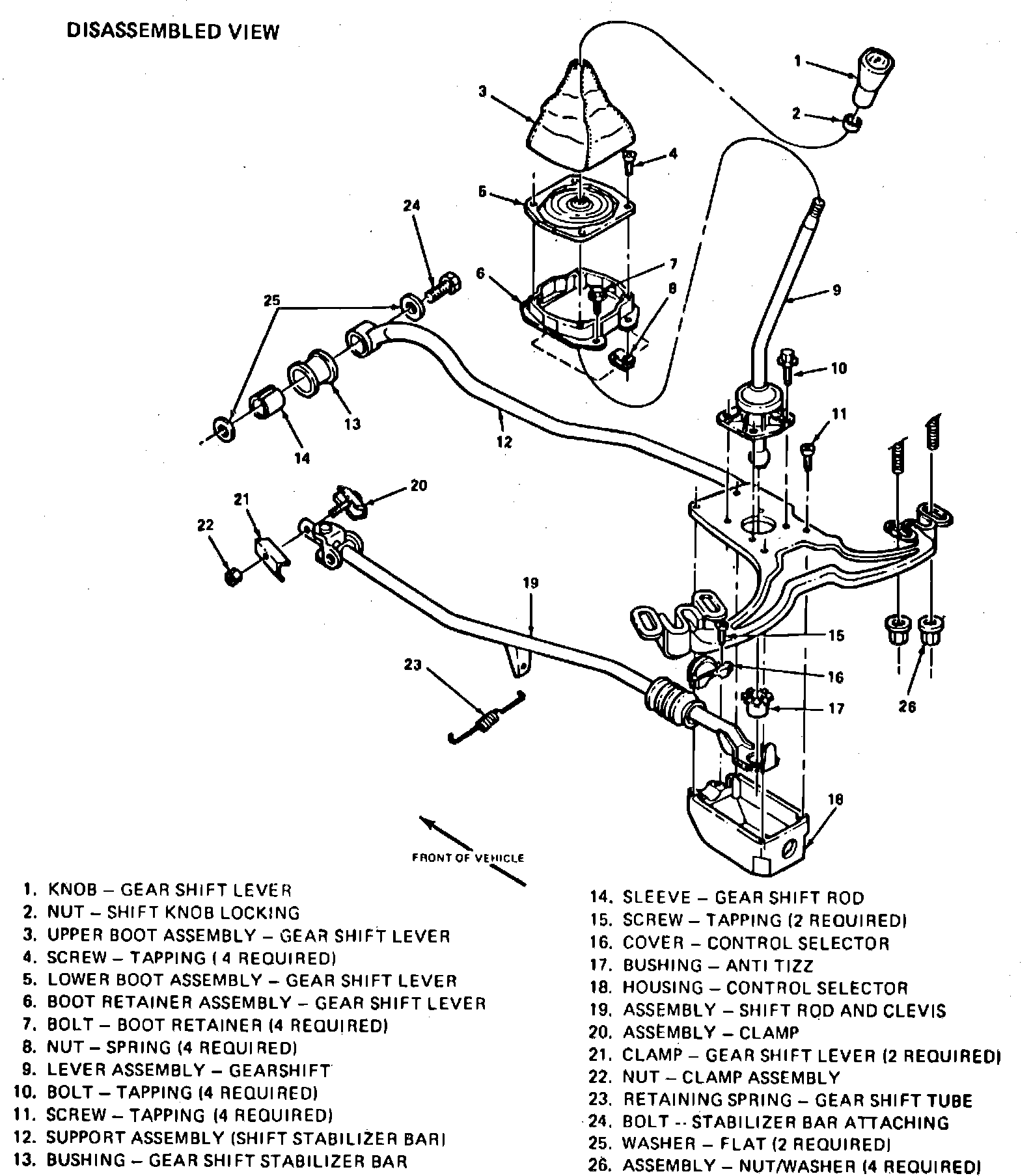 Adjustment of the external gearshift linkage is not necessary and no provision is made for adjustment.