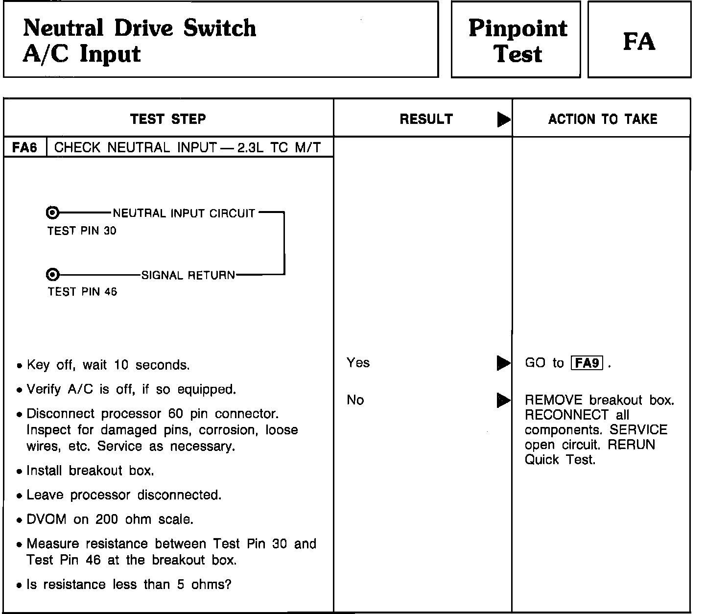 Pinpoint Test FA6 - Neutral Drive Switch A/C Input: