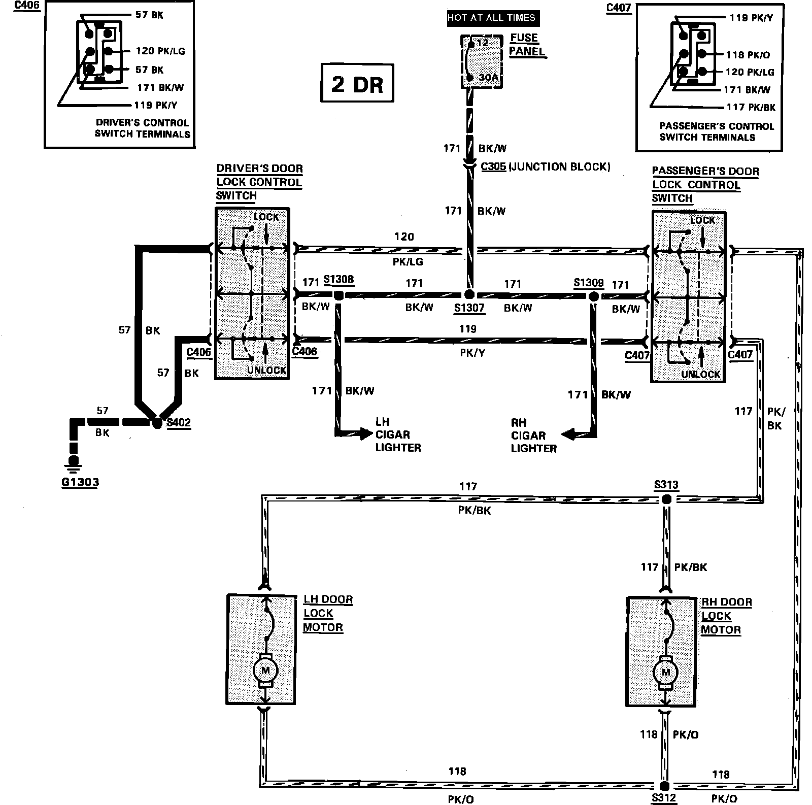 Power Door Lock Wiring Circuit (2 Door):