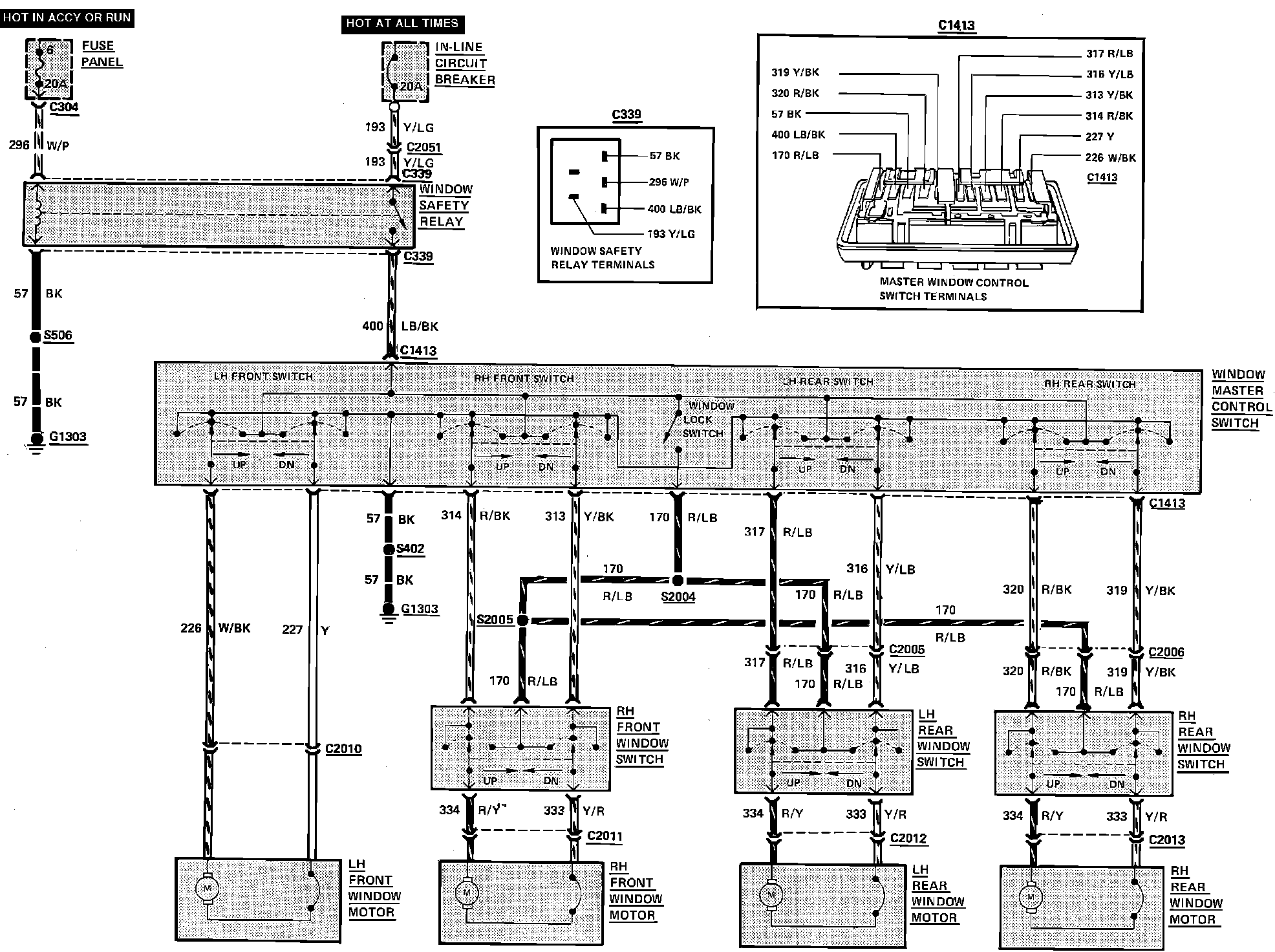 Power Window Wiring Circuit (4 Door):