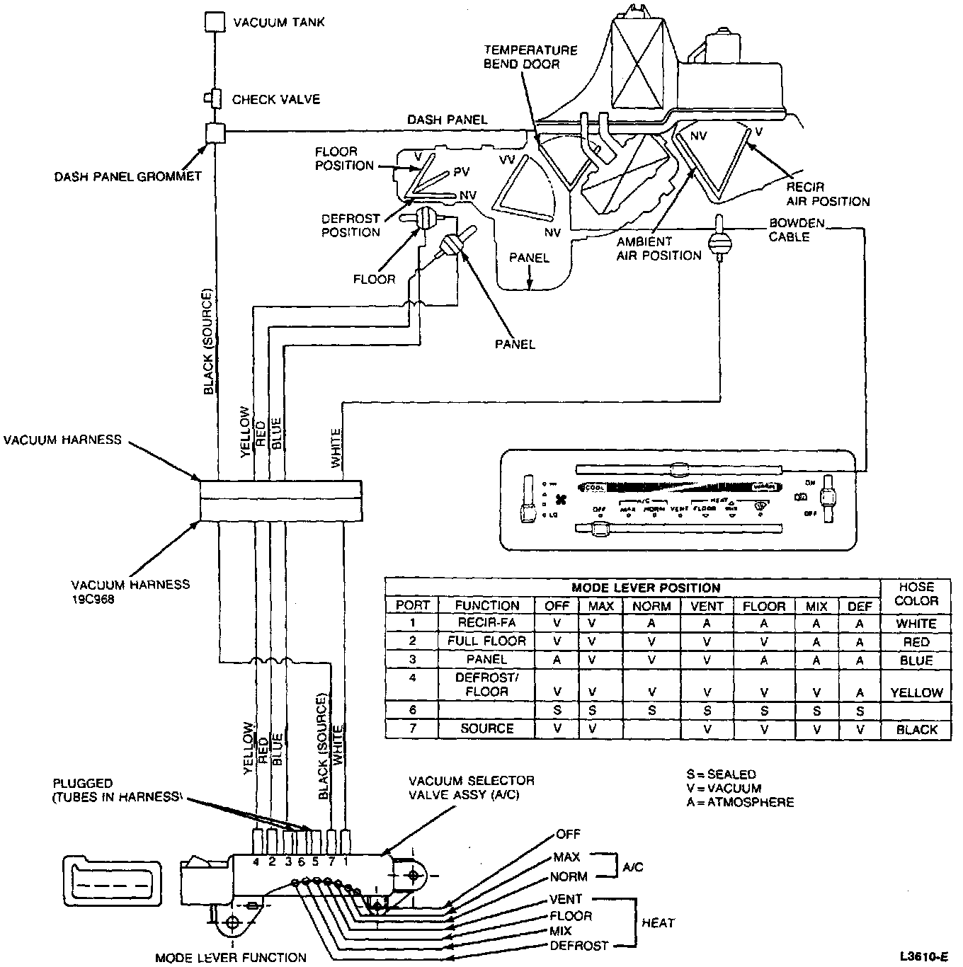 A/C Heater System Vacuum Diagram And Selector Test: