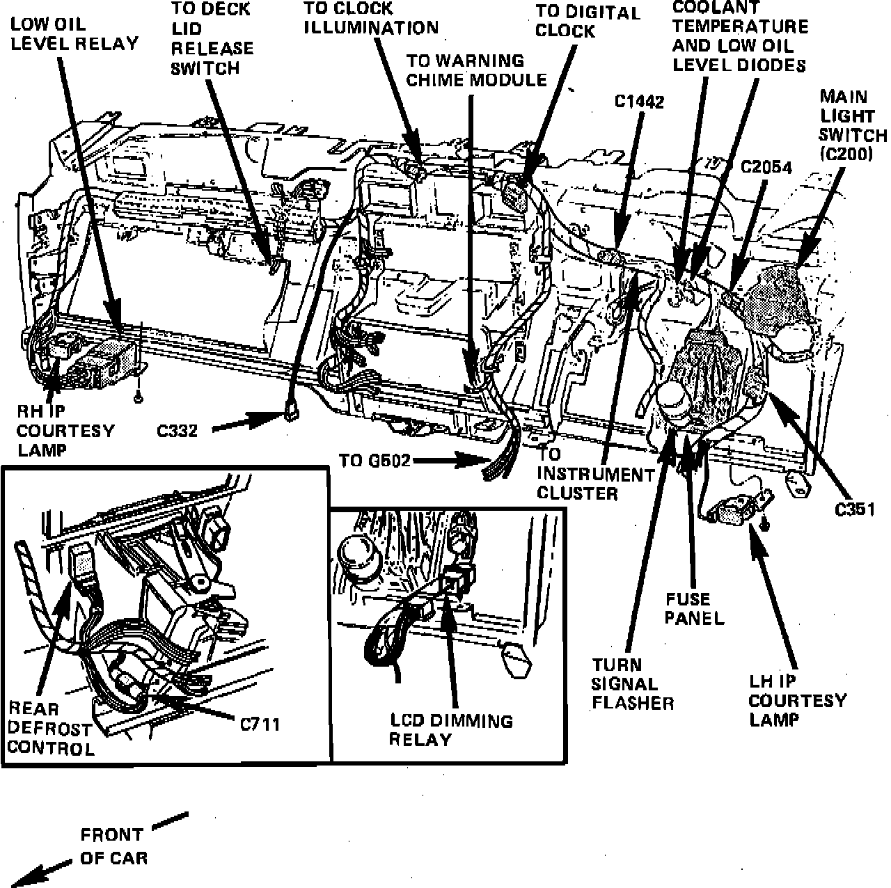 Front Of LH I/P, Near Steering Wheel