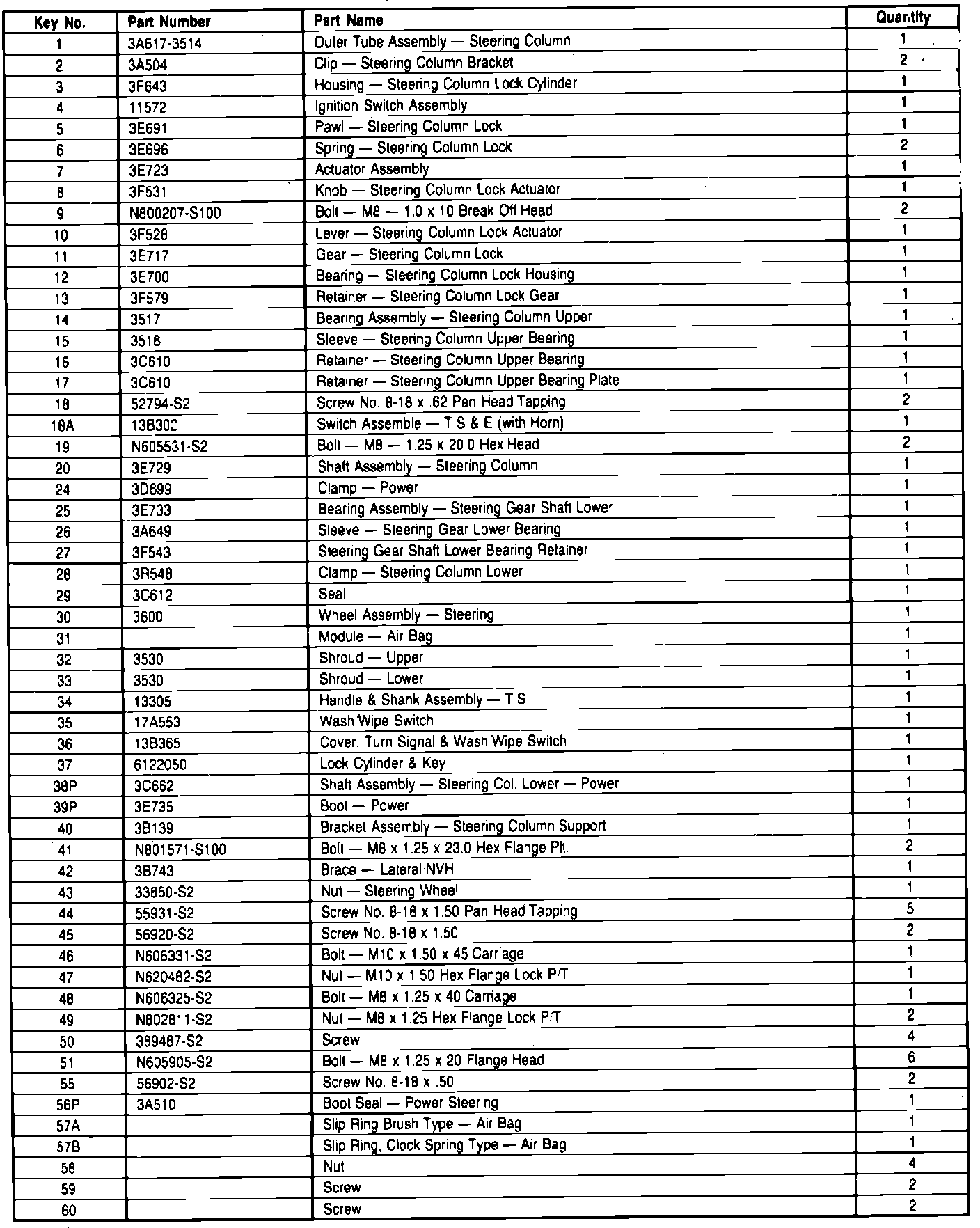 Fig. 1 Steering column exploded view (Part 1 of 2):