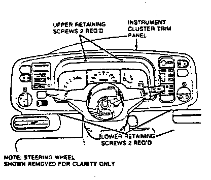 9. Remove four instrument cluster trim panel retaining screws, then the panel, Fig. 56.