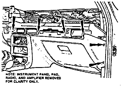 8. Remove heater louver panels by carefully prying from each side of lower instrument panel pad.