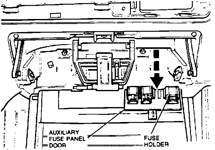 21. Remove fuse holders from auxiliary fuse panel door, mounted inside glove compartment cabity, Fig. 29.