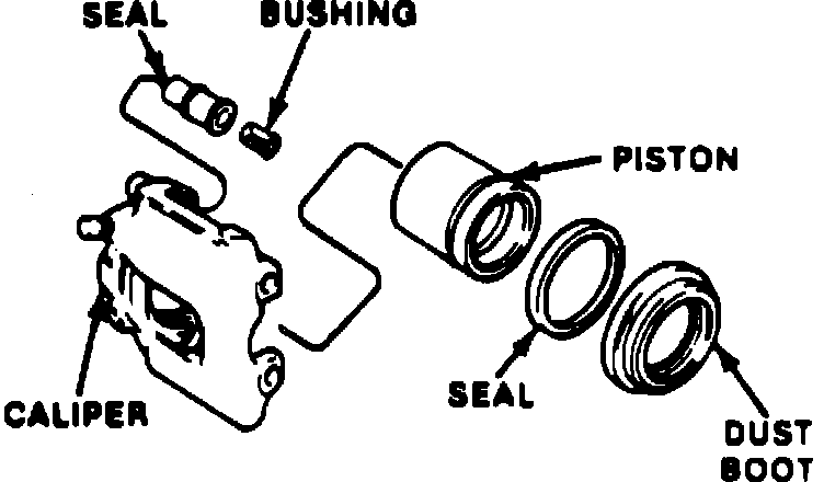 3. Position block of wood between piston and caliper, then apply air pressure through fluid inlet port to remove piston. Apply only enough air pressure to ease piston out of caliper.