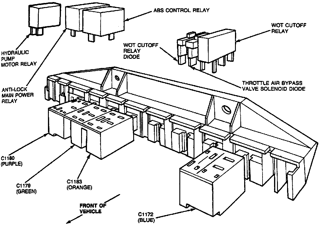 Relay LocationAll the ABS relays are located under the dash panel in the auxiliary relay panel.