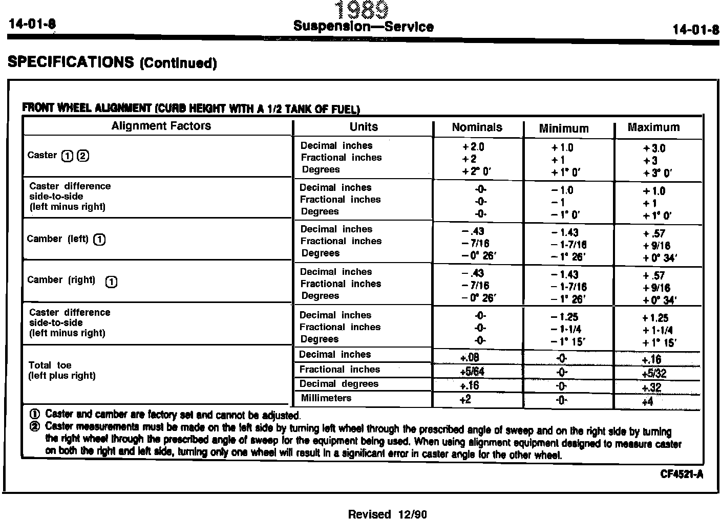 Front Wheel Alignment Specsifications - Revision