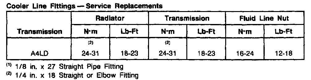 A4LD 4-spd A/T, Cooler Line Fittings: