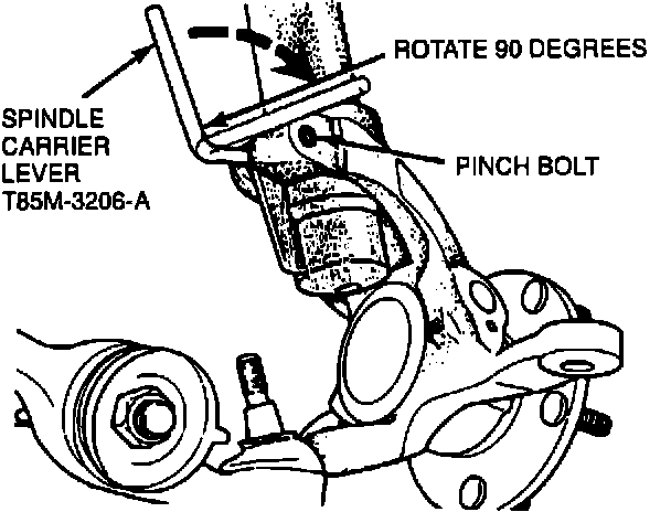 a. Insert the spindle carrier lever (T85M-3206-A) into the new spindle carrier slot, Figure 3.