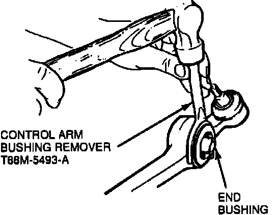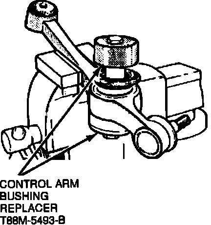 b. Install the control arm bushing replacer (T88M-5493-B) or equivalent, Figure 5.