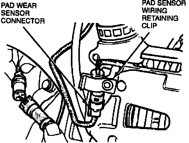 17. Connect the brake pad wear sensor and make sure it is properly routed, Figure 7.