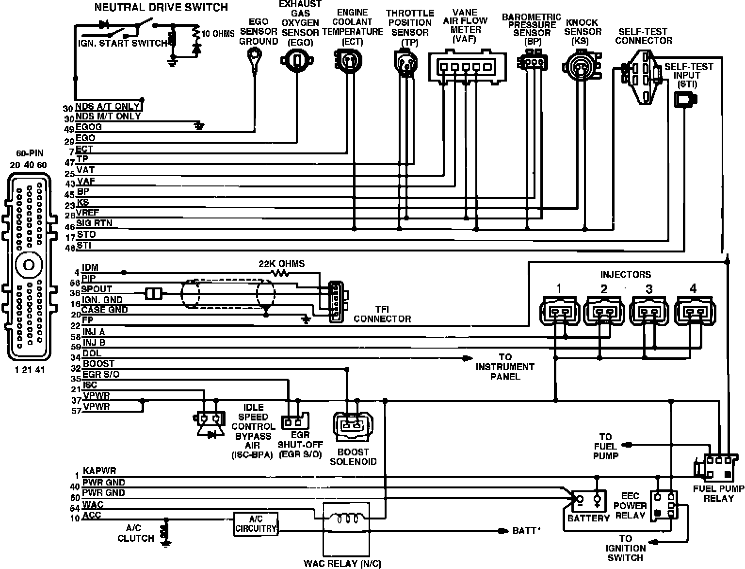 Fig. 24 EEC-IV system wiring circuit. XR4Ti: