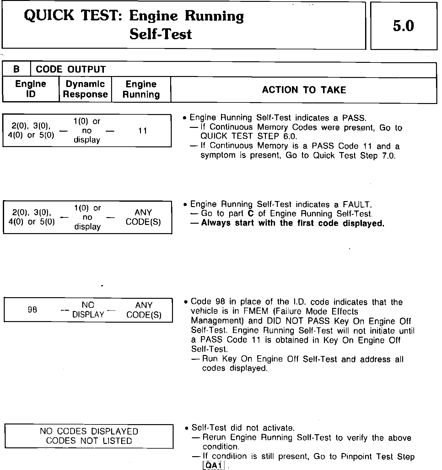 5.0B - Engine Running Self-Test (Codes)