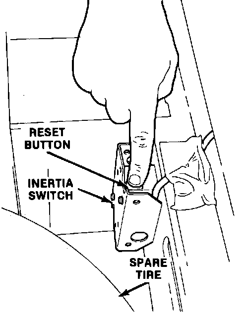 1. Locate inertia switch in spare tire well and depress reset button, Fig. 4.