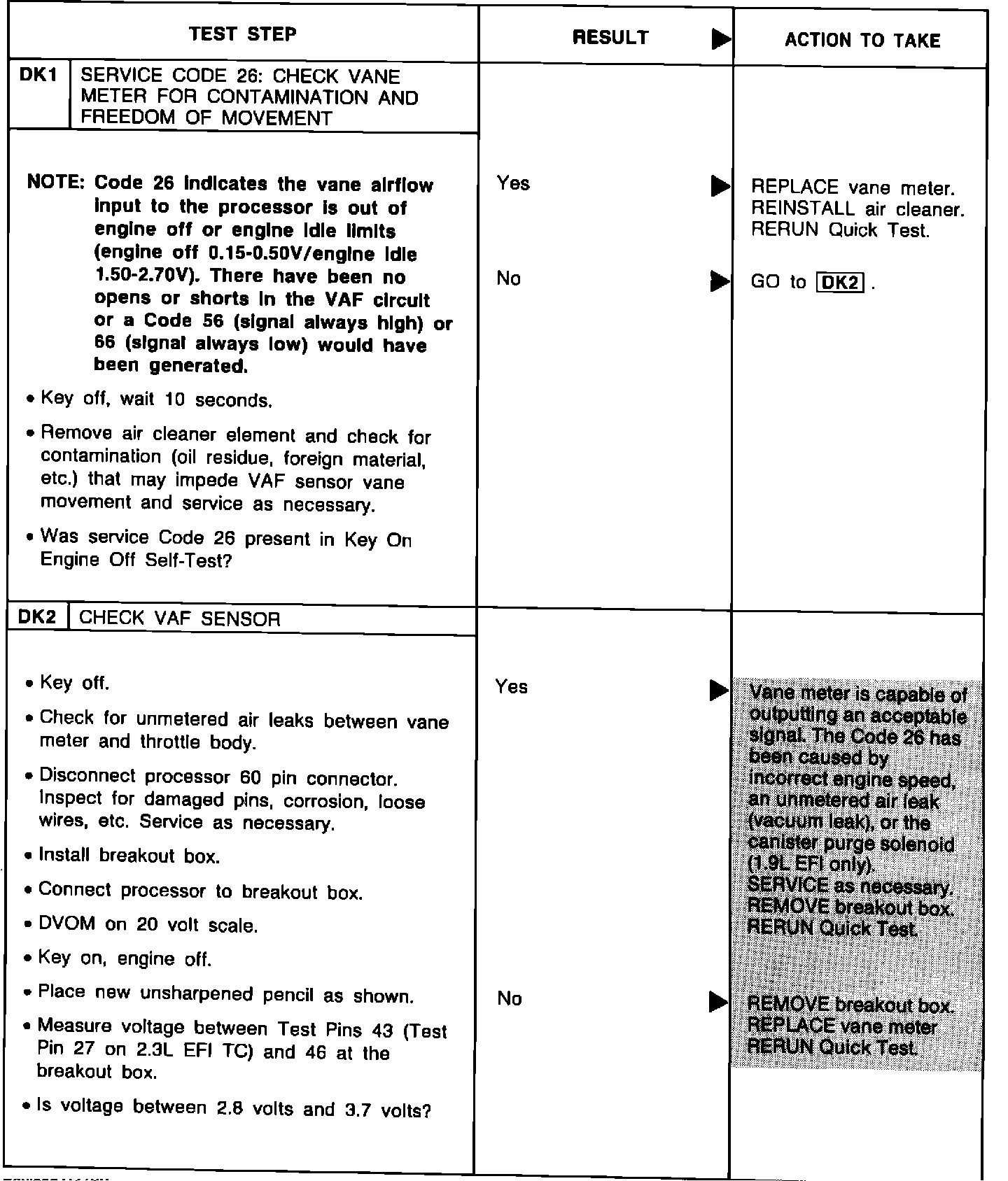 EEC IV - 1.9L EFI AND 2.3L OHC TURBOCHARGED ENGINE - VANE AIRFLOW SENSOR - PINPOINT TEST "DK" - SHOP MANUAL CORRECTION