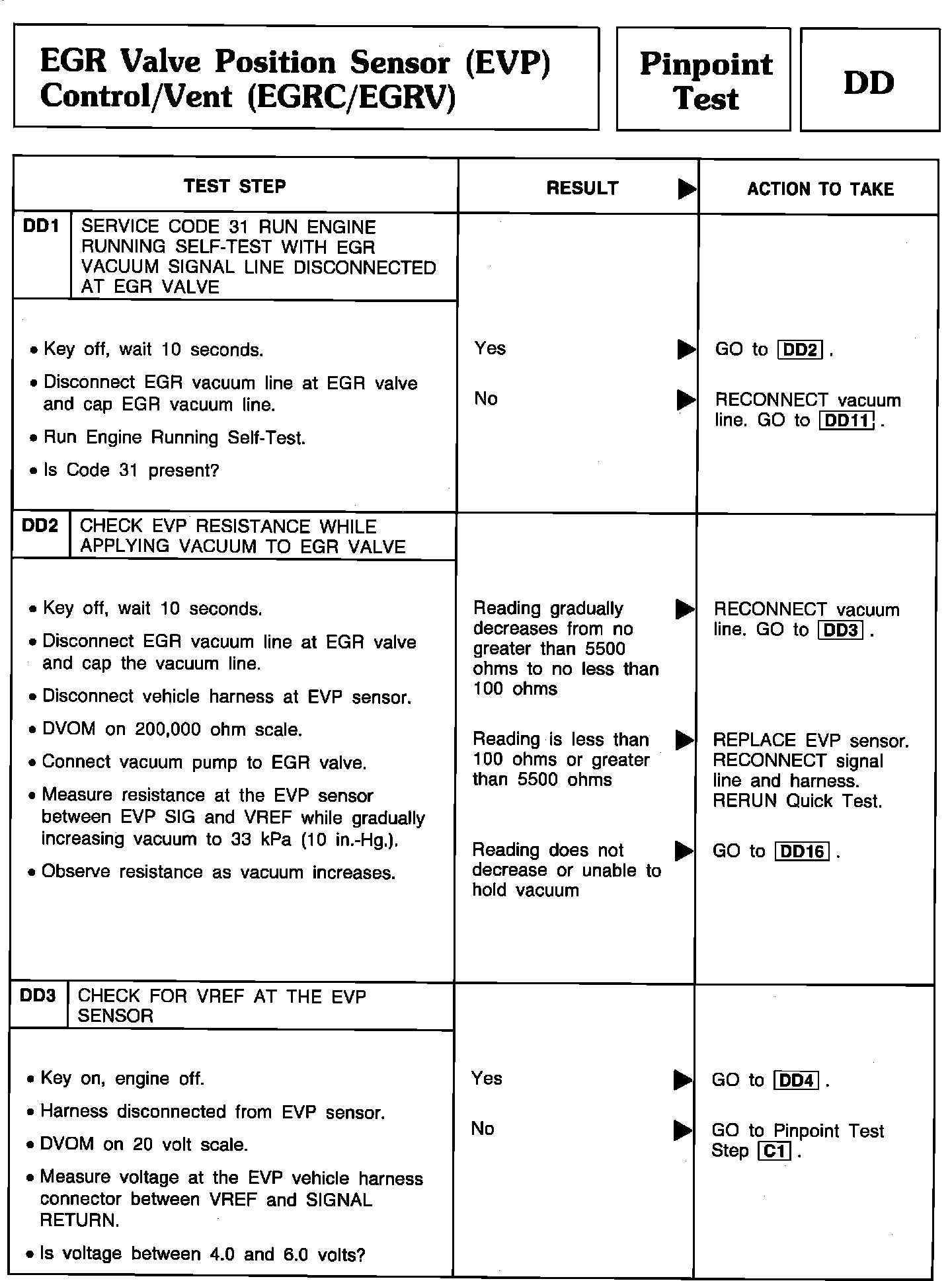 Pinpoint Test DD1 Thru DD3 - EGR Valve Position Sensor (EVP) Control/Vent (EGRC/EGRV):