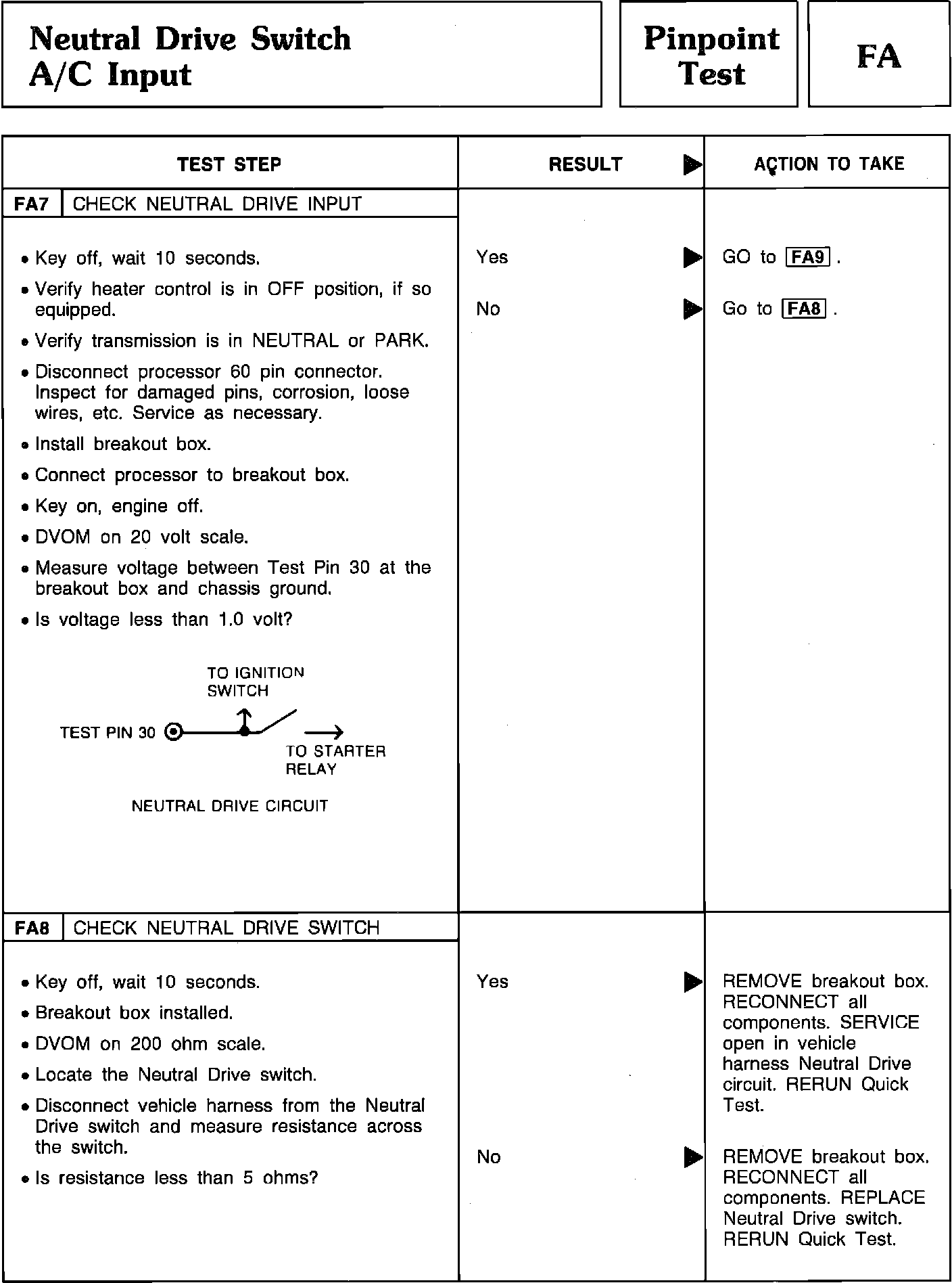 Pinpoint Test FA7 & FA8 - Neutral Drive Switch A/C Input: