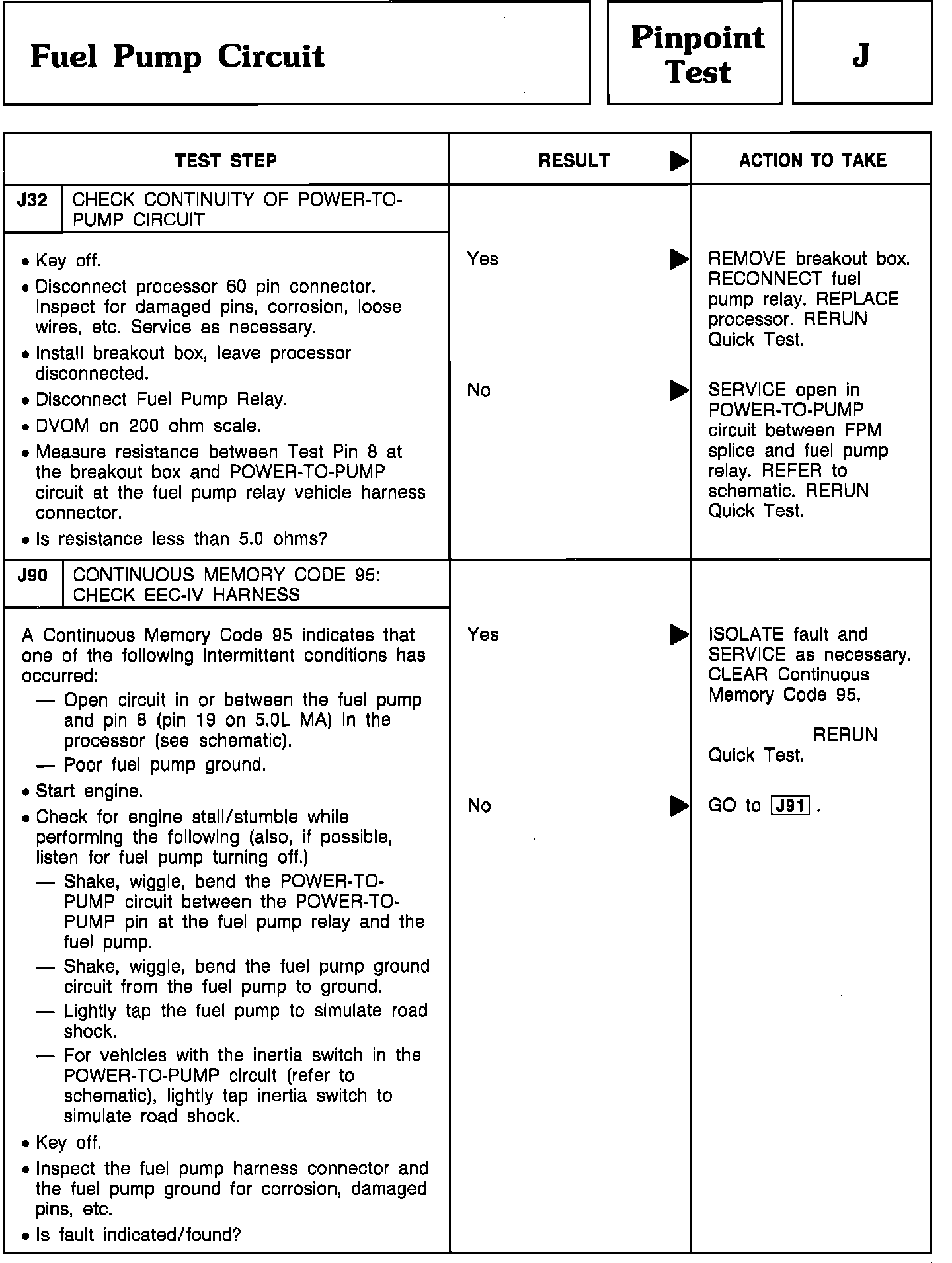 Pinpoint Test J32 & J90 - Fuel Pump Circuit: