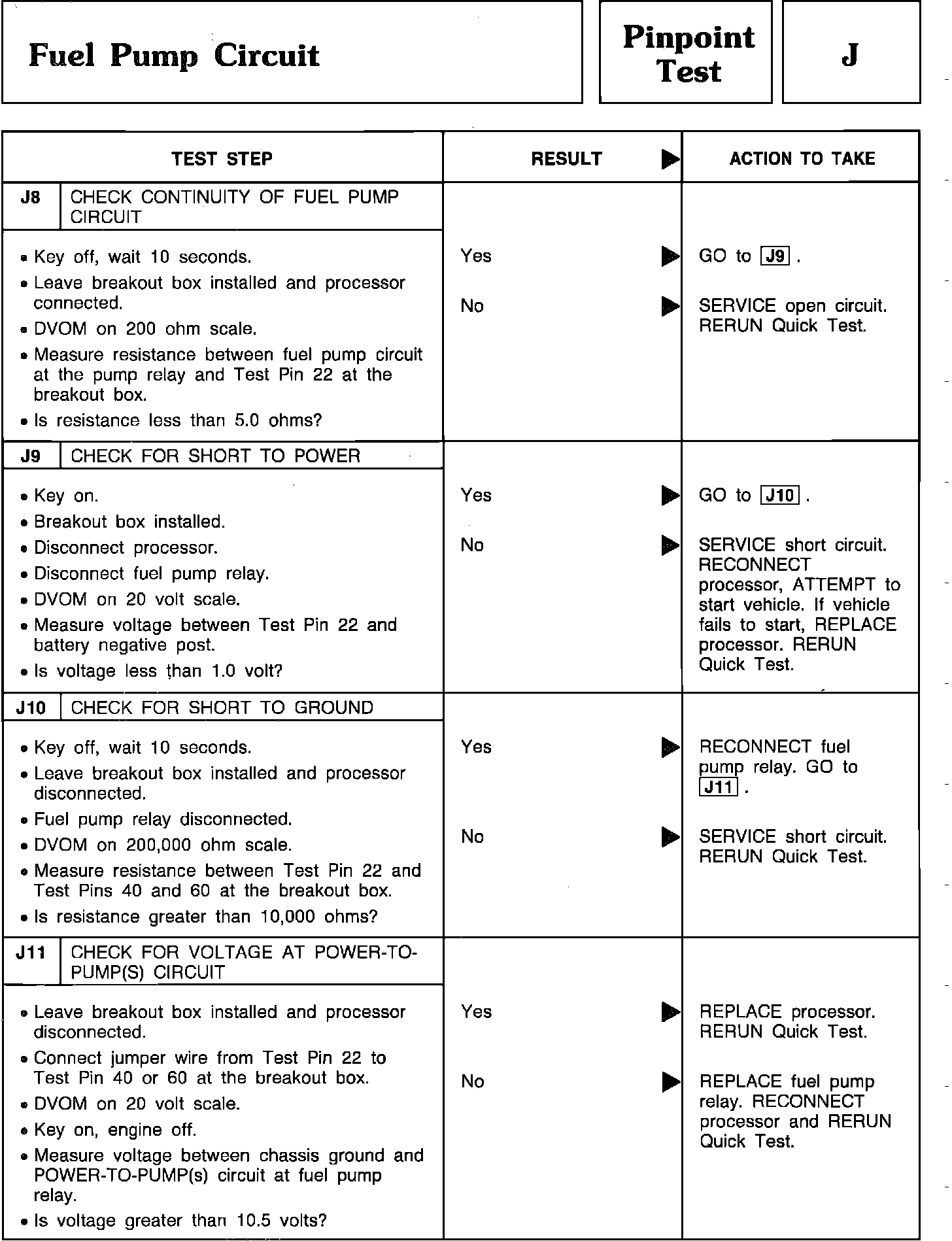Pinpoint Test J8 Thru J11 - Fuel Pump Circuit:
