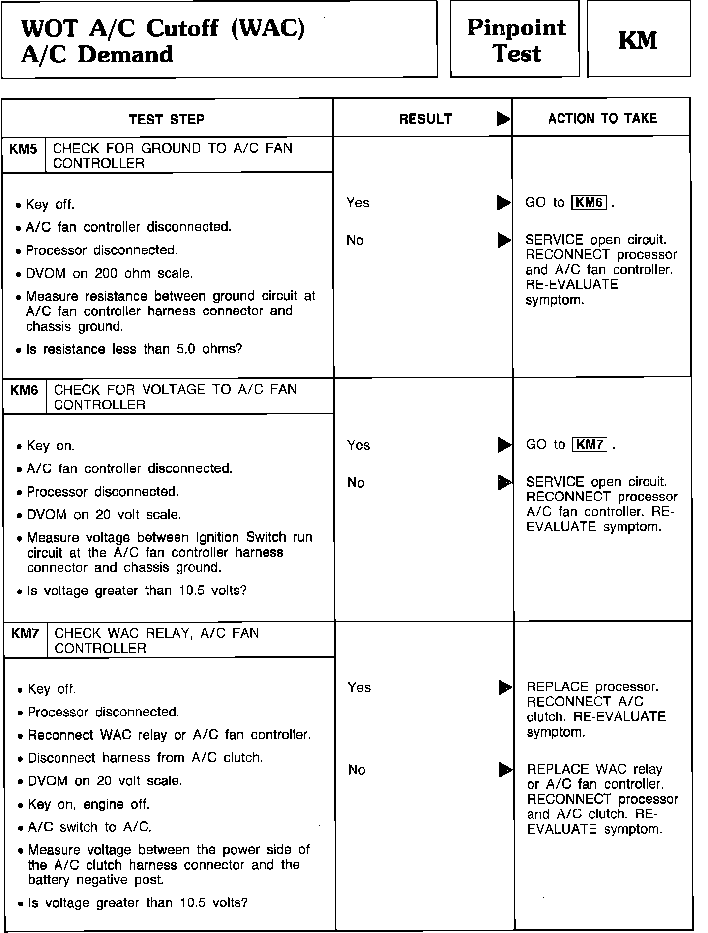 Pinpoint Test KM5 Thru KM7 - WOT A/C Cutoff (WAC) A/C Demand: