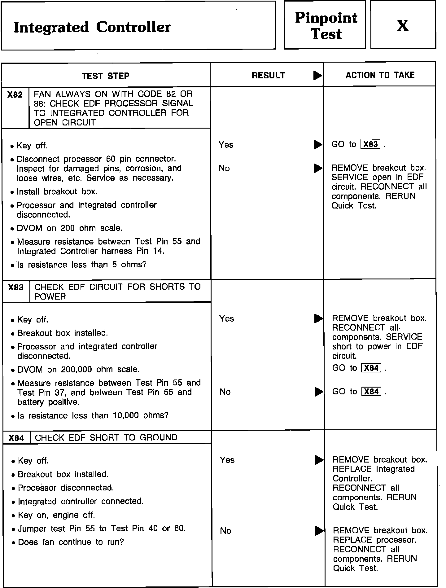 Pinpoint Test X82 Thru X84 - Integrated Controller:
