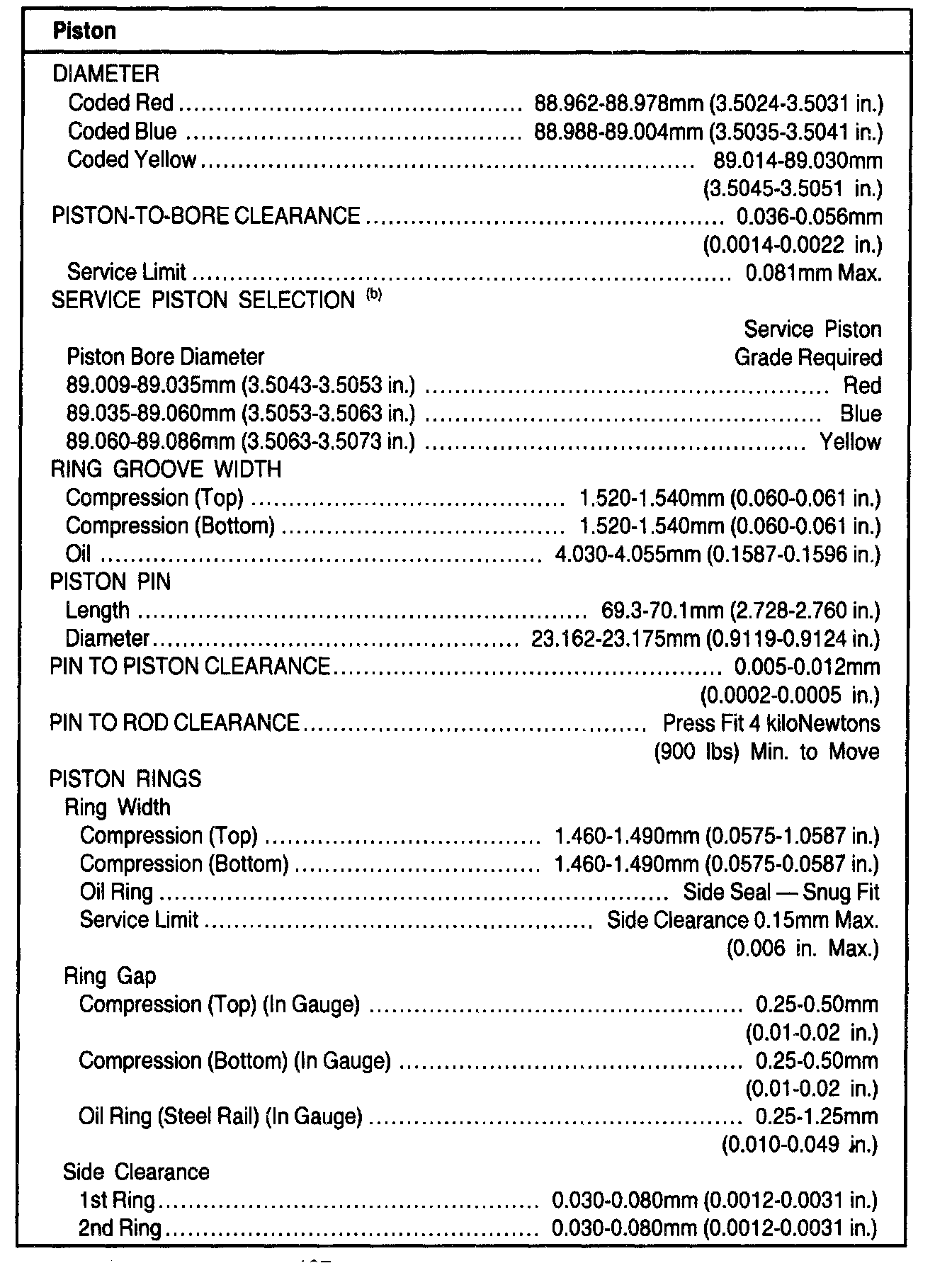 General Engine Specifications