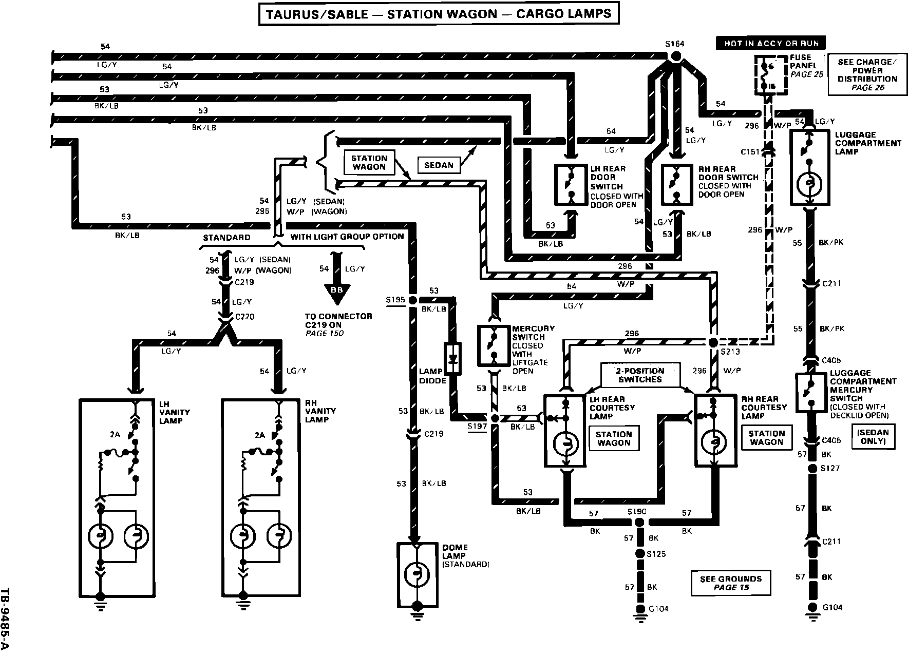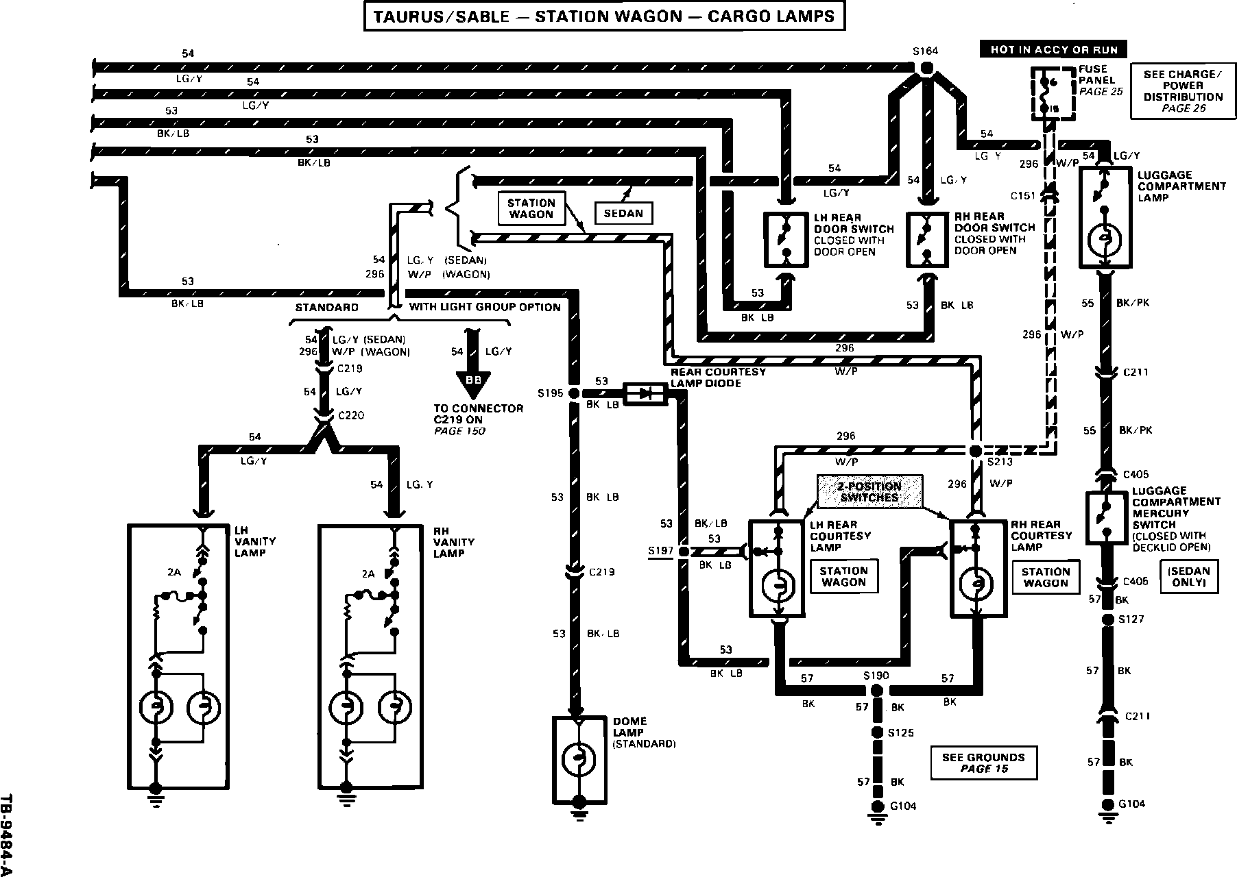 ISSUE: Station wagon interior cargo lamps have a two-position push button switch. The switch appears to be an "ON/OFF" function, but instead the switch really changes B+ feed from one circuit to another and back again.