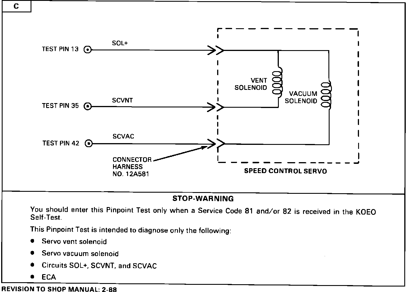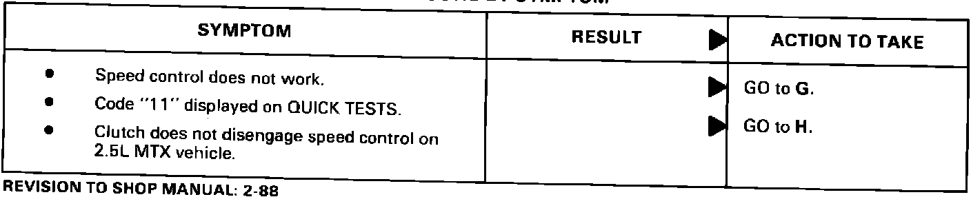 ISSUE: Some of the service information for the speed control diagnostic procedures in the 1988 Taurus/Sable Shop Manual is incorrect as published. The affected sections are 37-05-18, 37-05-24 and 37-05-27.
