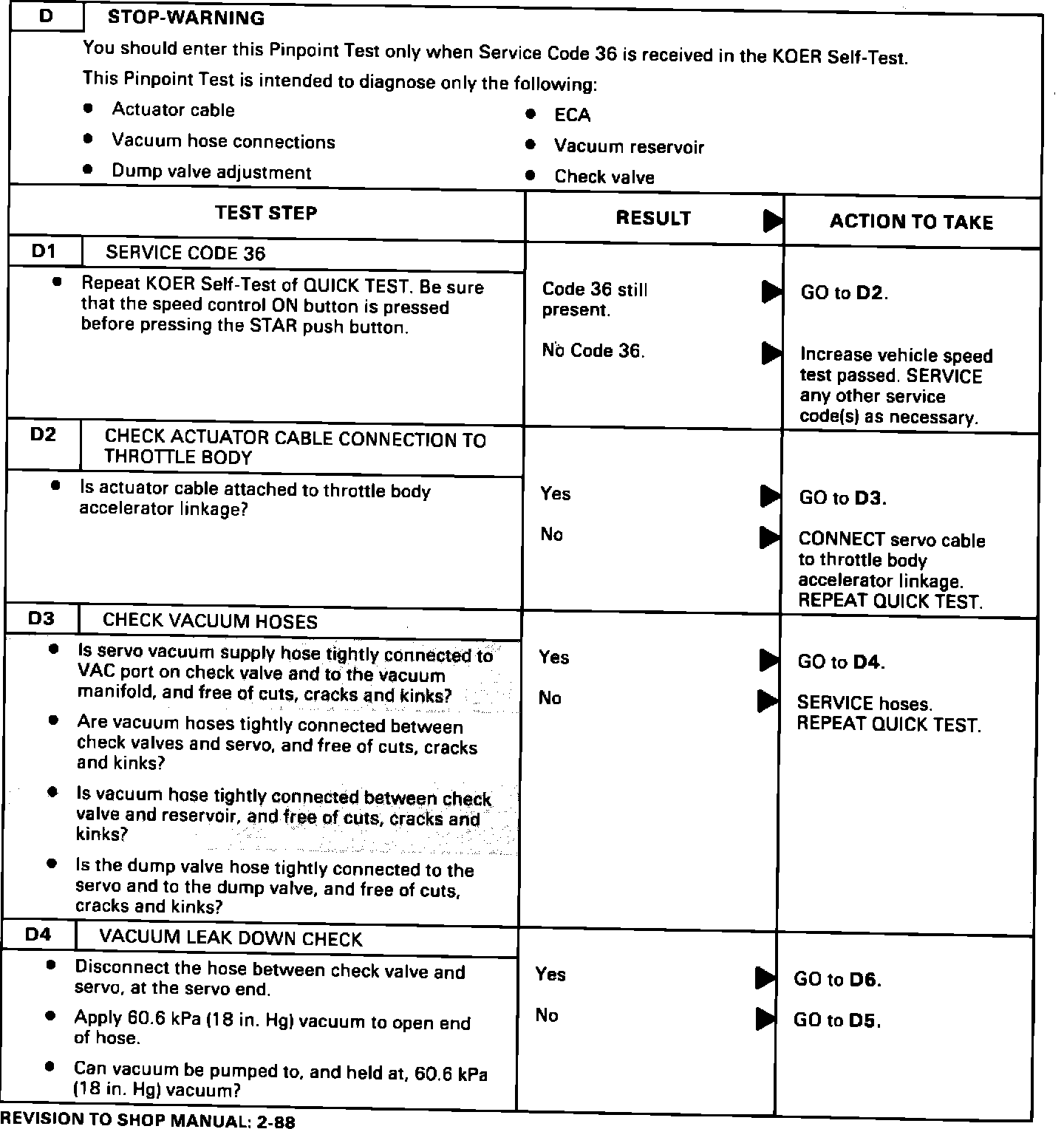 ACTION: If service is required, use the diagnostic procedures on pages 21 through 25 of this TSB. This information should be inserted in your 1988 Taurus/Sable Shop Manual.
