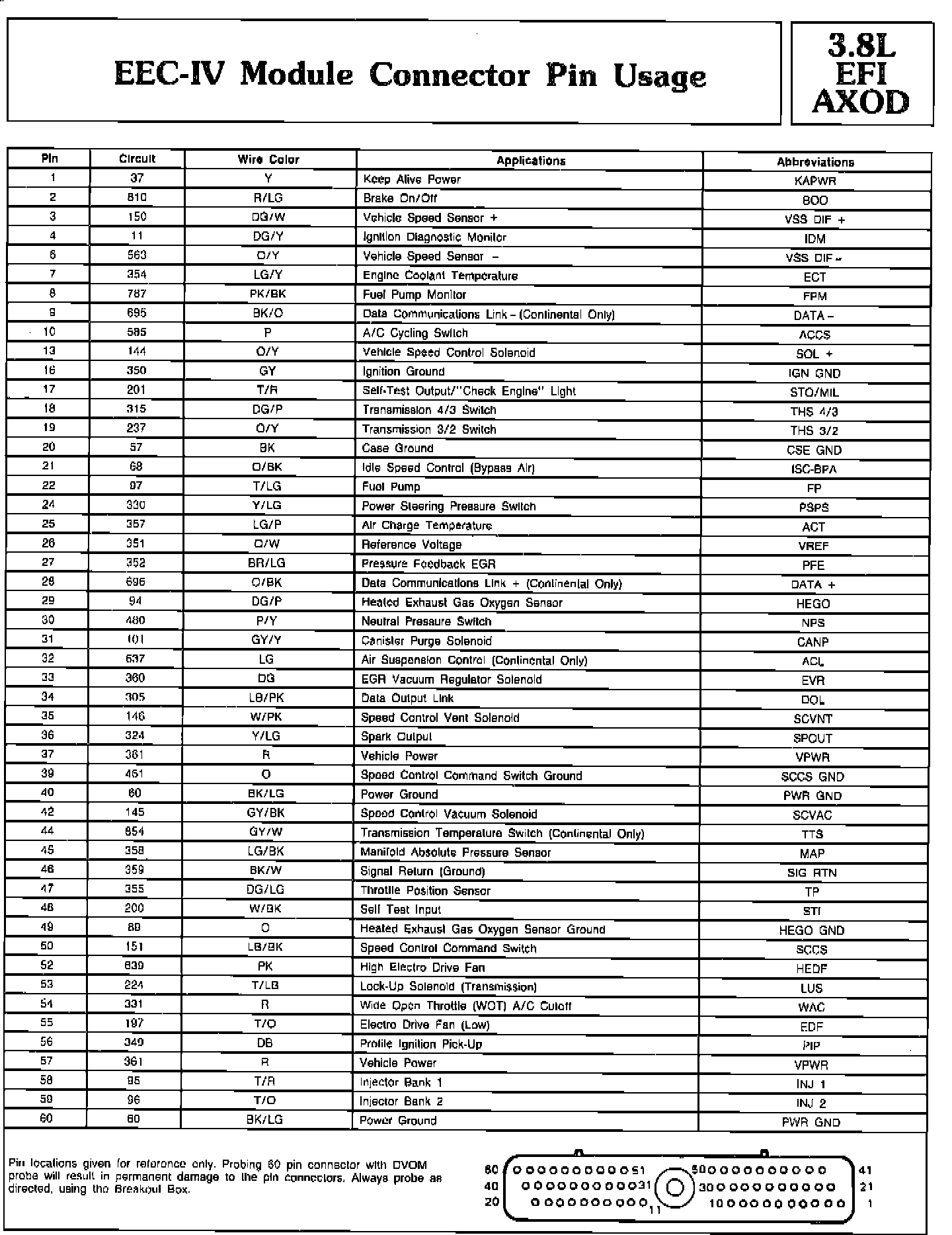 Pin Usage - EEC-IV Module: