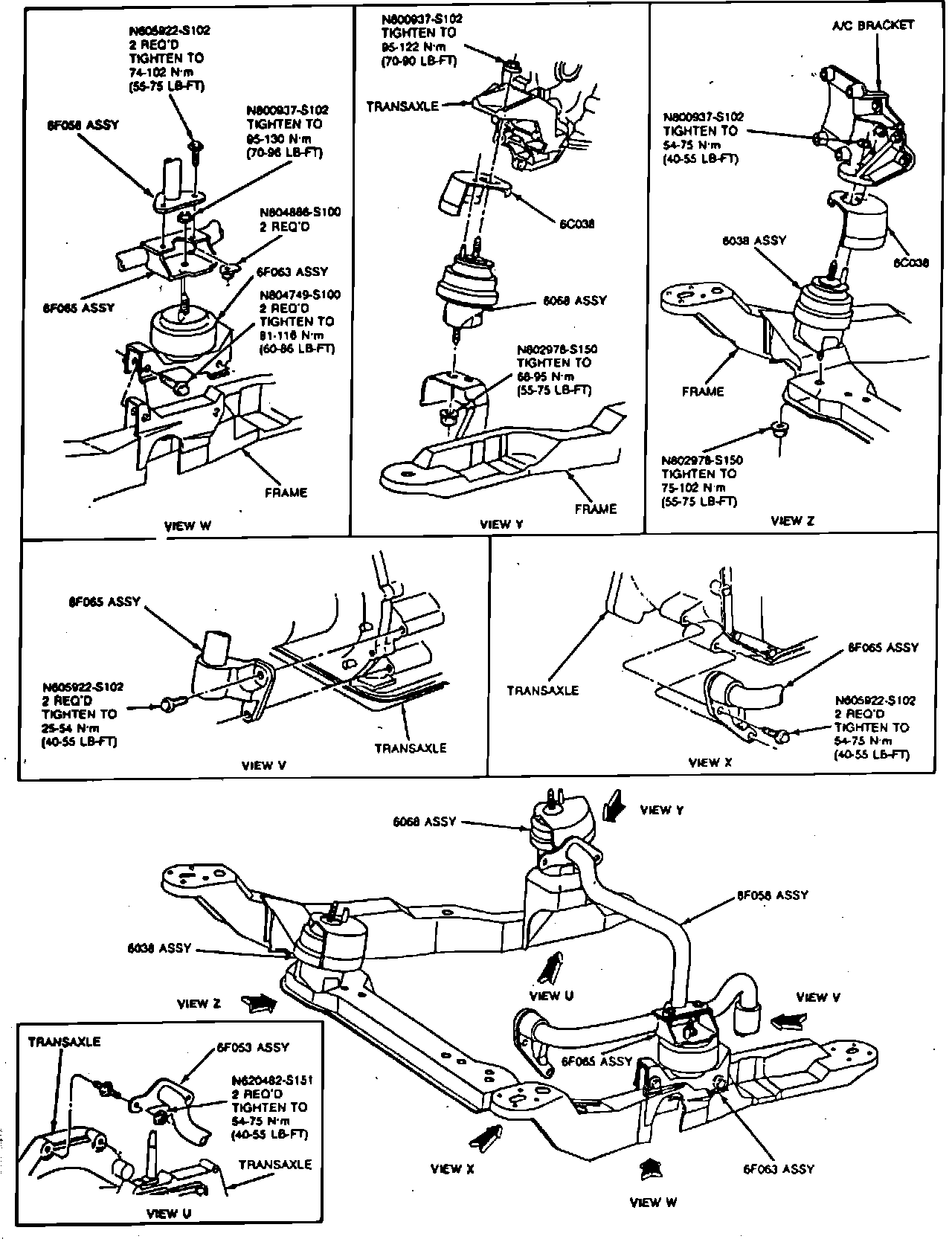 5. Remove support assembly to transaxle attaching bolts, then the insulator and/or support assembly.