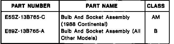 THE ORANGE BASE HALOGEN BULB AND SOCKET ASSEMBLY (E5SZ-13B765-C) IS THE ONLY BULB THAT IS SPECIFIED FOR USE IN THE 1988 CONTINENTAL. ALL OTHER VEHICLE APPLICATIONS USE THE BLUE BASE XENON BULB (E89Z-13B765-A).