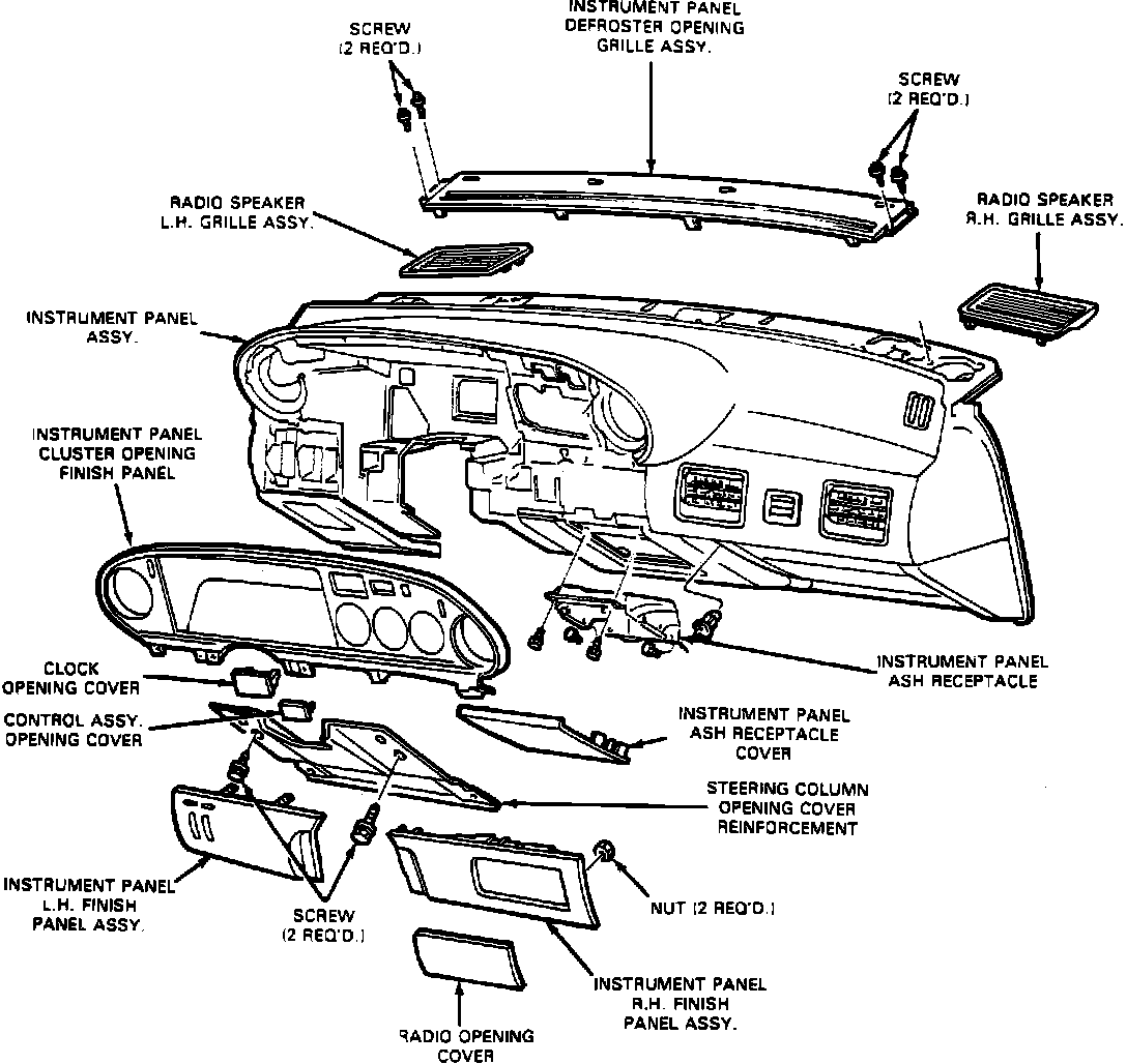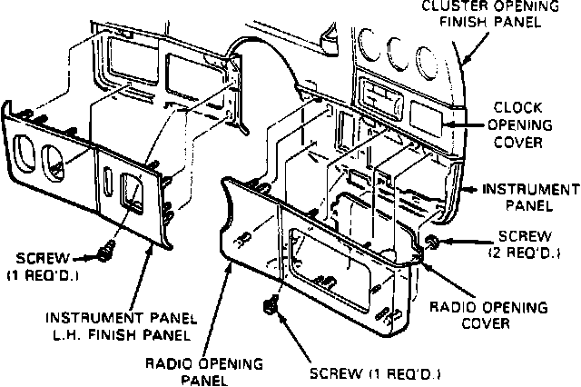 17. Snap out left and right front speaker opening covers and defroster grill, then remove three upper instrument panel attaching screws.