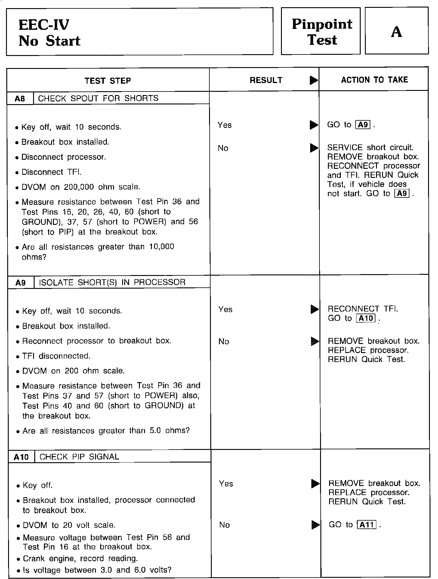 Pinpoint Test A8 Thru A10 - EEC-IV No Start: