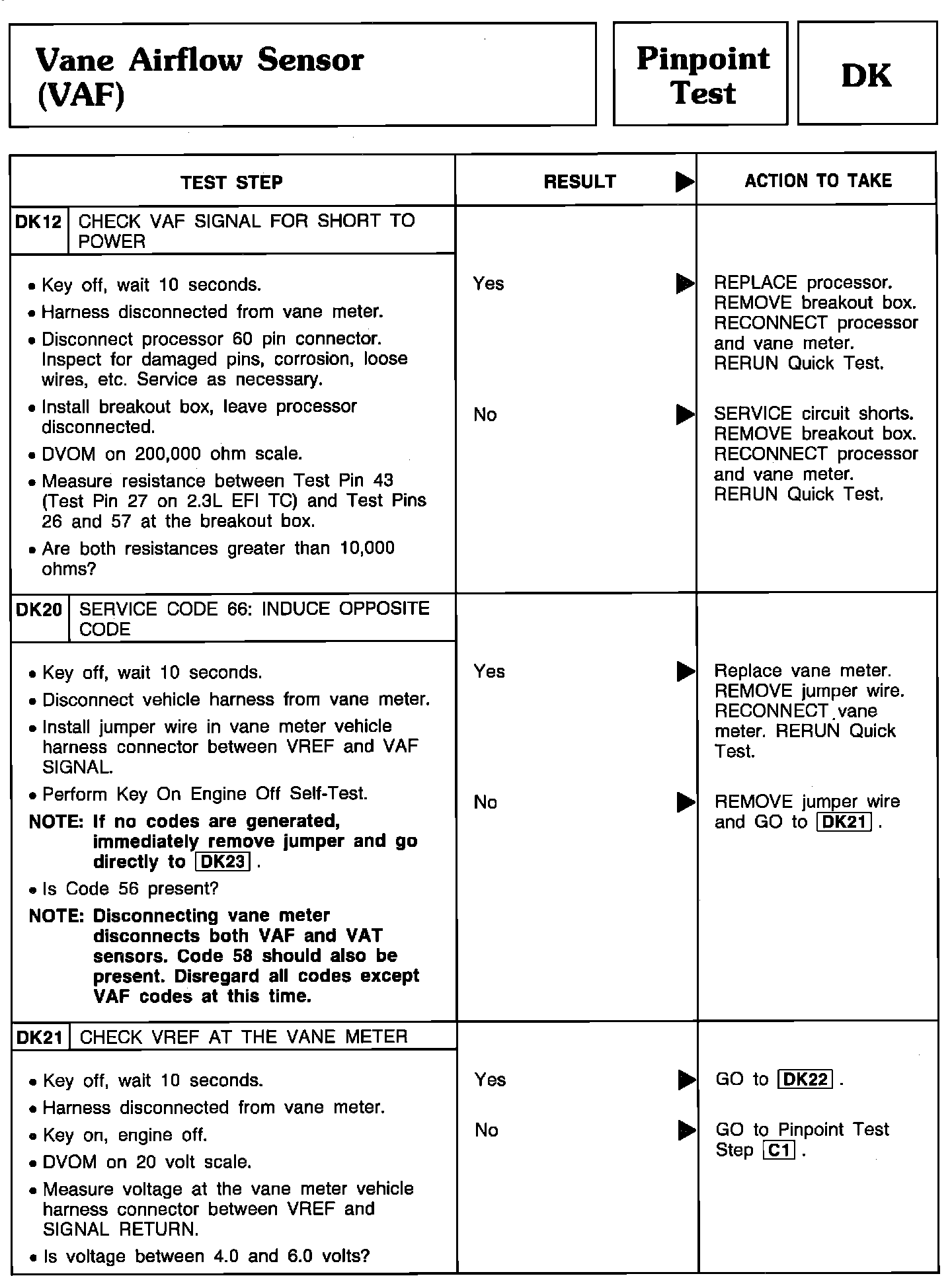 Pinpoint Test DK12 Thru DK21 - Vane Airflow Sensor (VAF):